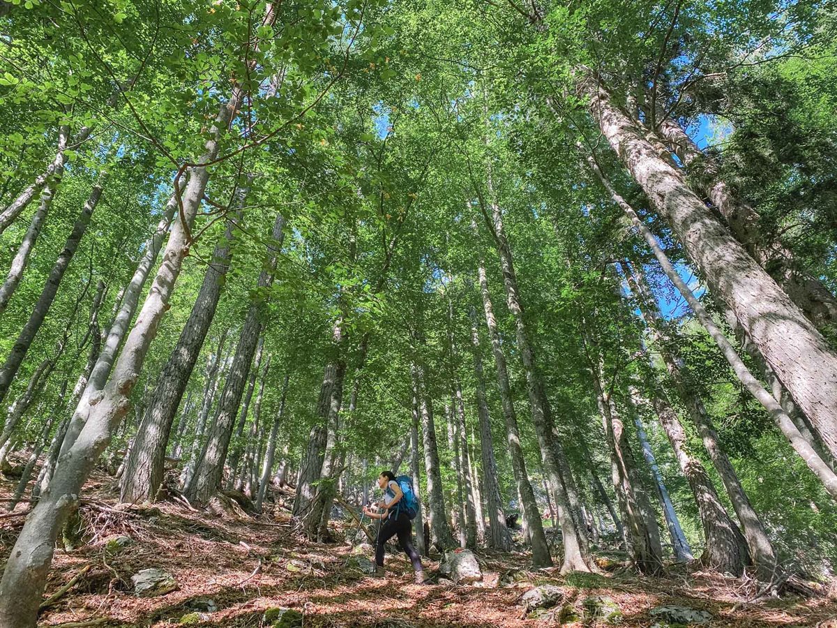 Incamminatevi sulla strada bianca che segue il torrente. Dopo 10 minuti vedrete sulla destra il sentiero CAI 520, ed è quello che dovete prendere. Il primo tratto di salita è esposto al sole e attraversa un ghiaione, poi si snoda all’interno del bosco.