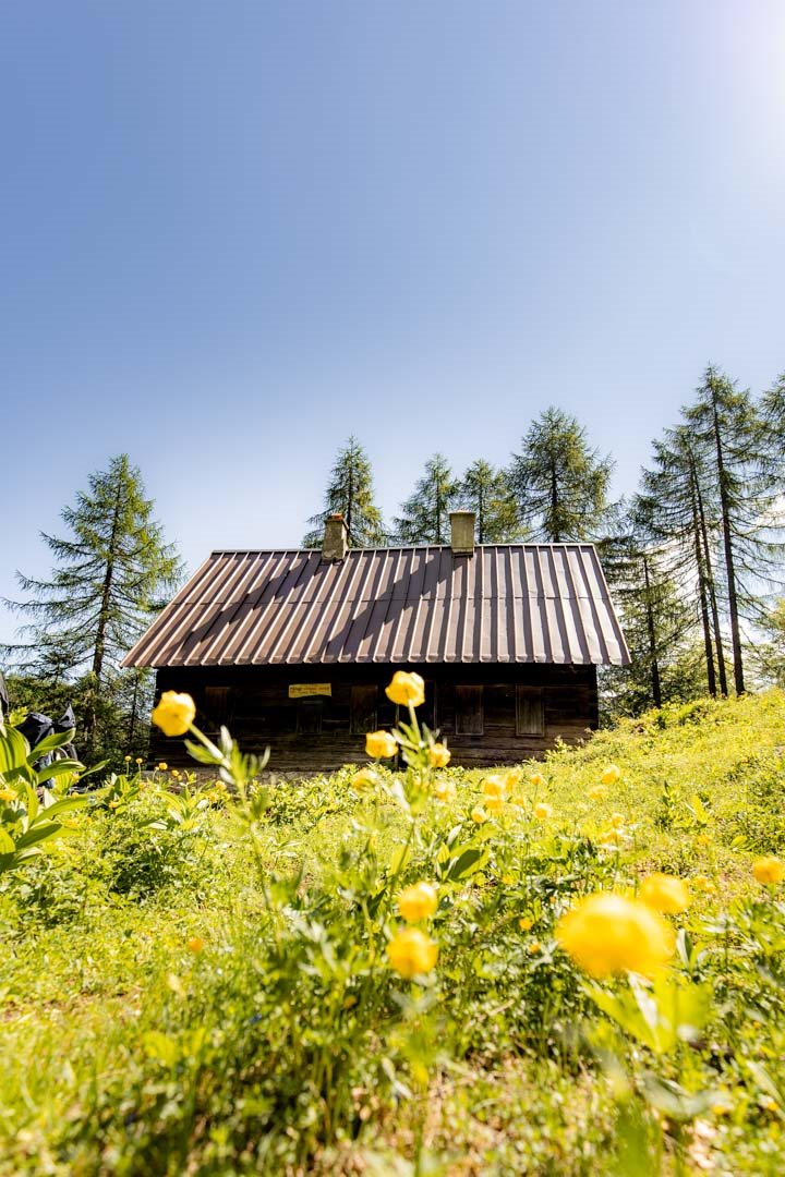 La salita non molla mai per tutti gli 880 m di dislivello. In alcuni punti ho trovato alberi caduti sul sentiero, ma si riesce a sorpassarli. Ci vorranno circa 2 ore per raggiungere la bella radura con Capanna Cinque Punte circondata dal bosco e dalle Cinque Punte di Raibl.