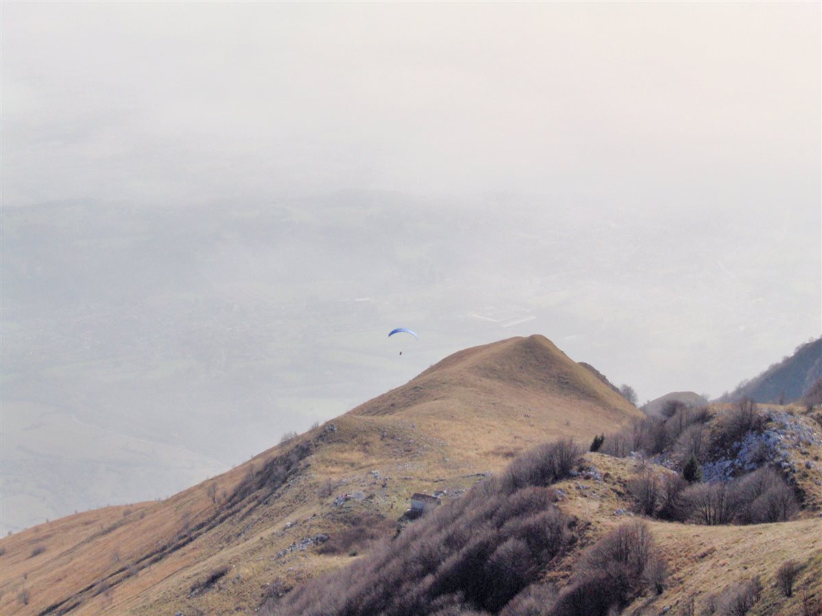 Per questa occasione la scelta è quella di lasciare l'auto al parcheggio dell'Osservatorio Astronomico di Montereale e iniziare a salire imboccando il tracciato MV05 che diventa poi MV02 (per chi volesse vi è anche il sentiero CAI 987).  Il sentiero, sempre ben segnato da omini e segnavia giallo/blu, sale in maniera abbastanza facile, tagliando alcuni tornanti (che vengono affrontati con il 987) lungo la foresta e fino a giungere a un pendio erboso che ci regala una splendida vista sulla pianura pordenonese. Da qui la salita inizia a farsi più impegnativa e sulle gambe si inizia a sentire il dislivello che sale. La camminata è praticamente tutta in cresta ma mai pericolosa.