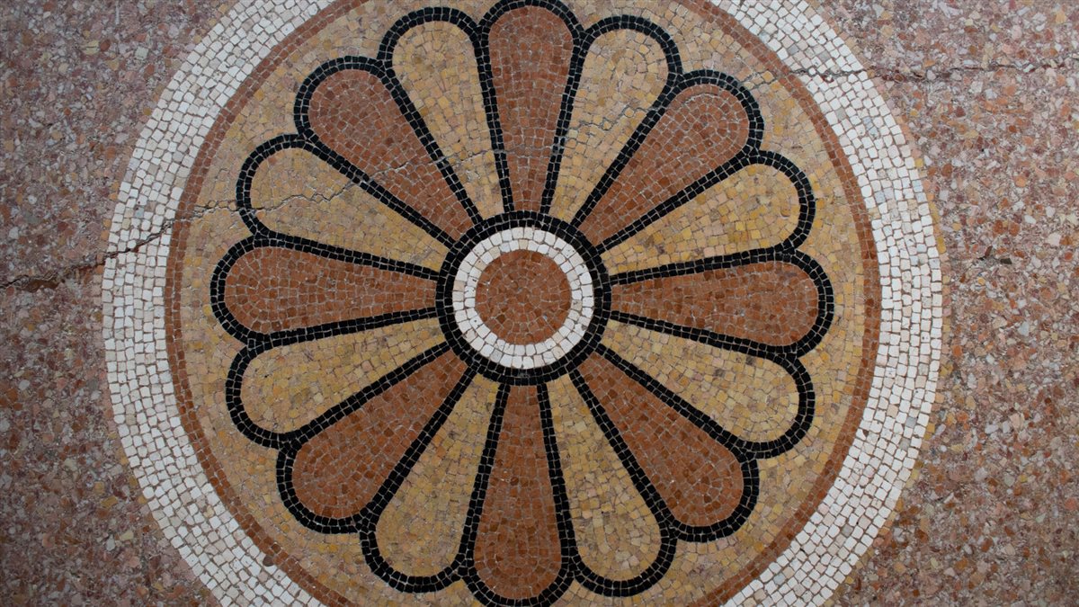 Durante la mia esperienza il viaggio nel tempo si è intensificato nelle stanze medievali e ottocentesche del Castello, dove per un instante mi sono sentita parte di quell’elegante atmosfera. Nella Sala degli Specchi, Sala Verde e nei Salotti comunicanti fra loro (Sala della Musica, della Caccia, della Cineseria e la Biblioteca) i miei occhi si sono posati su ogni piccolo e antico particolare; ma abbassato lo sguardo a colpirmi è stata la bellezza dei pavimenti in mosaico.