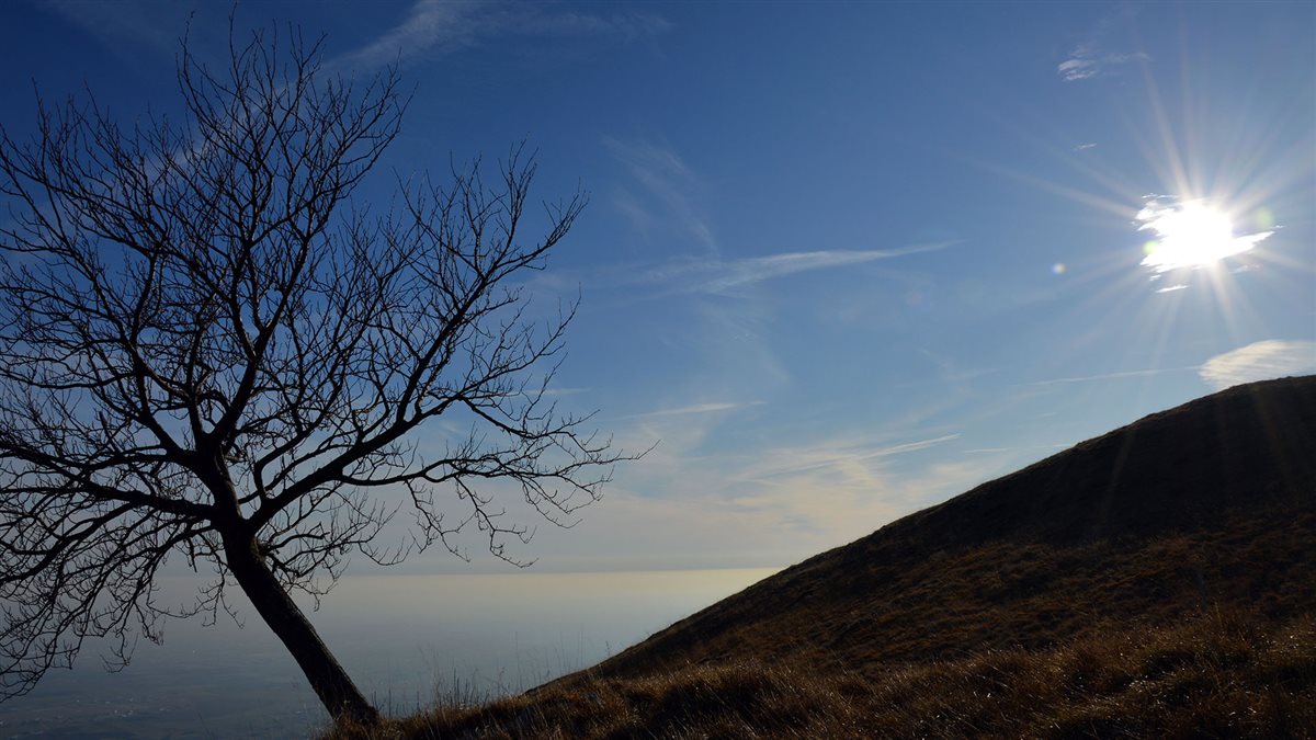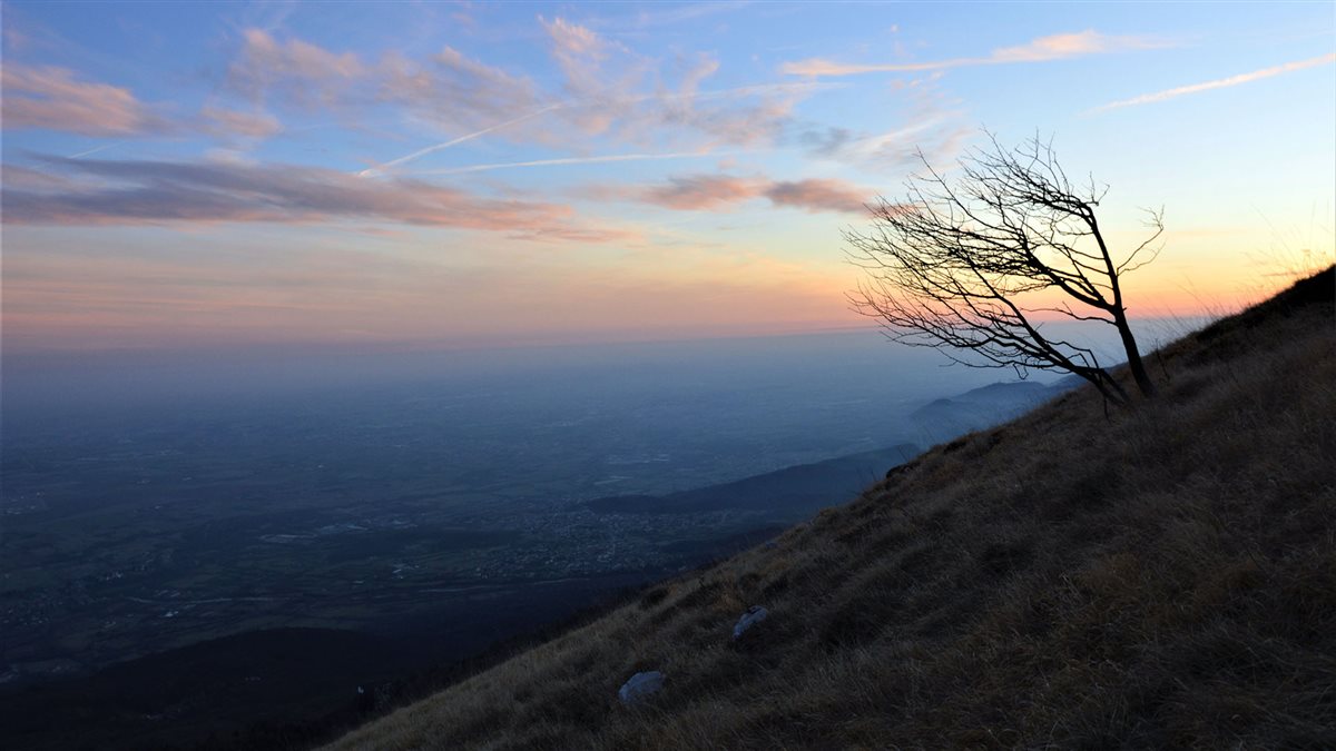 Il percorso è molto antico, serviva alle genti di Aviano per raggiungere i pascoli del piano del cavallo. Dopo pochi minuti, appena uscito dal bosco è subito un gran stupore. La vista si apre, da Venezia a Trieste, dai Colli Euganei al Monte Canin: si vede tutto. Lo splendido panorama mi motiva a proseguire, mi sento proprio come un pastore errante, nel silenzio, avvolto nei pensieri. La pace qui è solenne e il sole inizia a scendere inondando di rosso il limpido cielo.