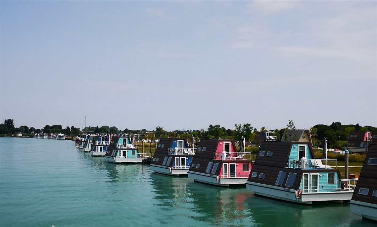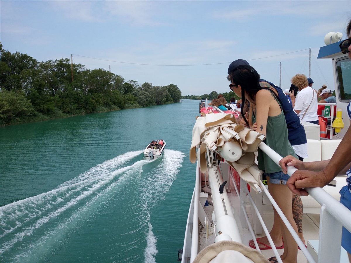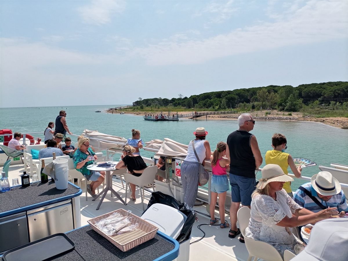 Facile partire, navigare su un battello a tre piani, farsi scompigliare dalla brezza del Re dei fiumi alpini, il Tagliamento, con gli occhi pieni di verde, acquamarina, argentei riflessi. Sto per raccontarvi recente esperienza lungo il fiume più importante per il FVG, là dove perde l’aspetto torrentizio e si trasforma in placida, ampia, corrente smeraldo, navigabile, prima dell’incontro col Mare Adriatico, dopo un viaggio di più di 170 km dalle Alpi Carniche. A Lignano, carica di emozione, riesco a cogliere varie lingue. L’Emerald River è proprio una nave-stella, di 40 per 10 mt, del Marina Azzurra Resort, esclusivo villaggio con ristorante fluttuante che una volta la settimana scioglie gli ormeggi.  Attrezzata di crema solare e cappello, salgo fino al ponte del sole, a cielo aperto, ignara che gli ombrelloni elettrici rimarranno inattivi. Esploro curiosa. Sulla riva del molo mi attirano, a circa due km dalla foce, allineate come in un plastico le case vacanza galleggianti, colorate, le house boat, a pochi passi dal Parco Zoo Punta Verde di Lignano Sabbiadoro.  Sulle note musicali salpiamo. Uno scatto segue l’altro: colori, natura, potere dell’acqua. Nel medio corso si dice che l’aria del Tagliamento dia benefici salutari. Vale anche alla foce? Mi riempio occhi e anima dell’energia dell’ultimo corridoio naturale e selvaggio, profondo qui sei metri, tra il Friuli Venezia Giulia e il Veneto. I fiumi sono storia, per Tiziano Terzani. E che storia racconta questo nastro naturale di anse che si snoda, fiancheggiato da tamerici, canneti, pioppi e tigli! A Pertegada la svolta, per seguire la mèta del mare, sempre con allegra e coinvolgente musica dal vivo. Tempo arriva di colorati cocktail, un piatto di pasta ai frutti di mare, mentre le gambe seguono la musica. Dura circa tre ore la crociera, adatta a famiglie, a chi cerca una gita inconsueta. Ogni mercoledì estivo, dalle 11.00 alle 14.00, potete vivere la vostra live short experience a bordo dell’Emerald, e se prenotate al tramonto è assicurata una suggestiva e romantica cornice.