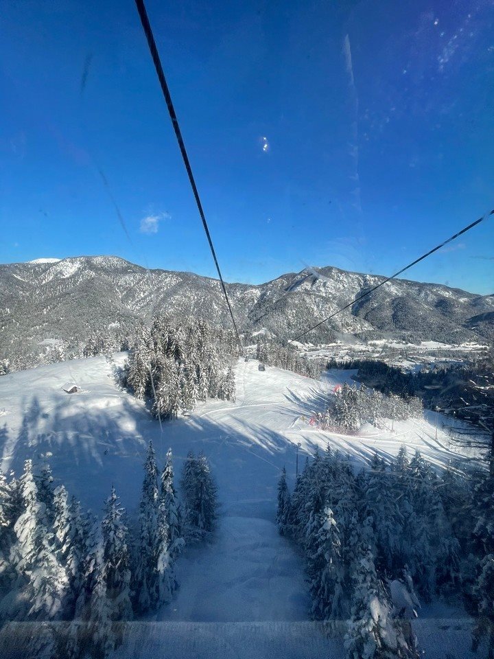 Partenza comoda alle 9 da Udine, raggiungiamo Tarvisio dove recuperiamo colazione e pranzo da asporto e saliamo sul Monte Lussari con la funivia.