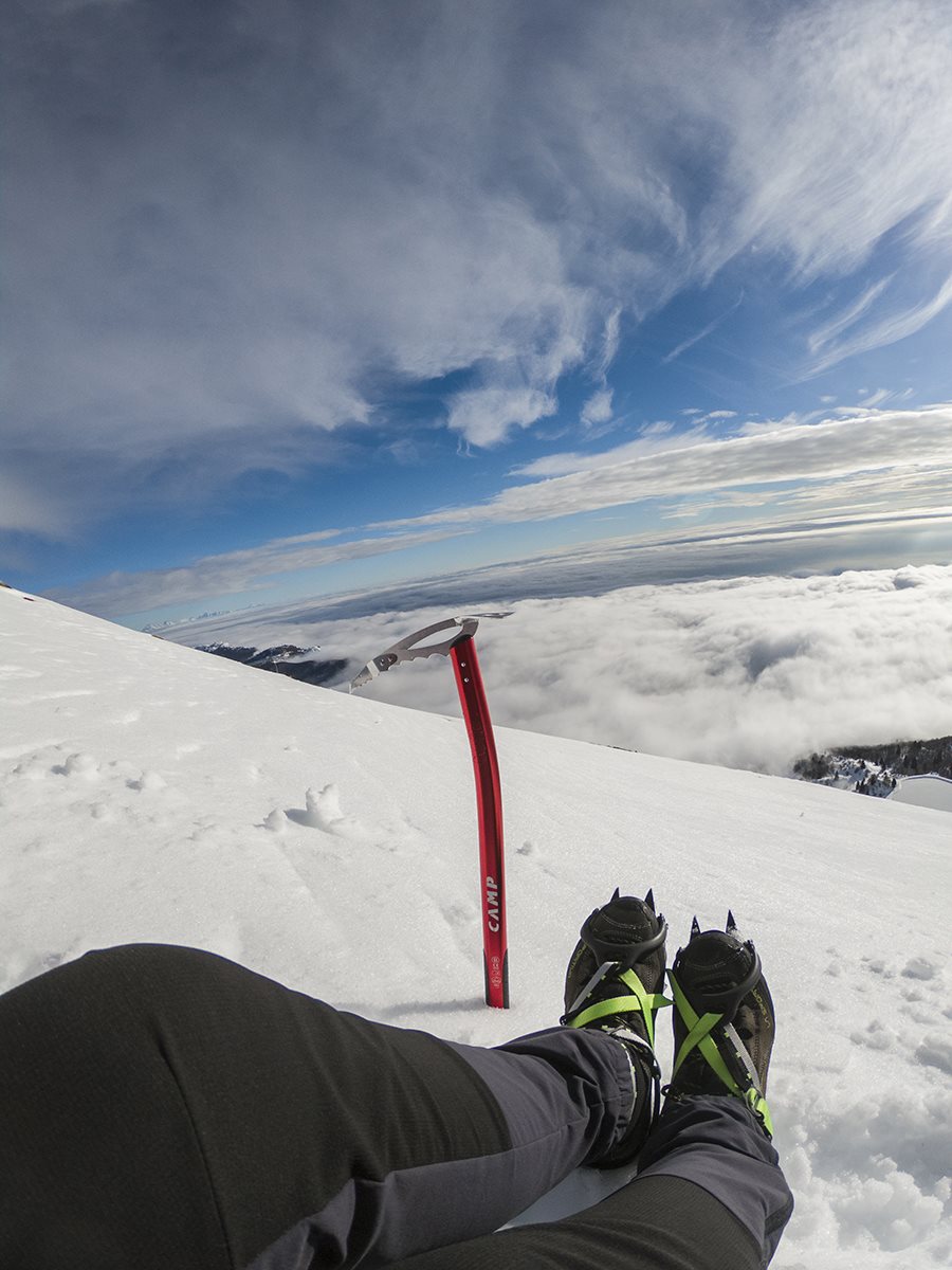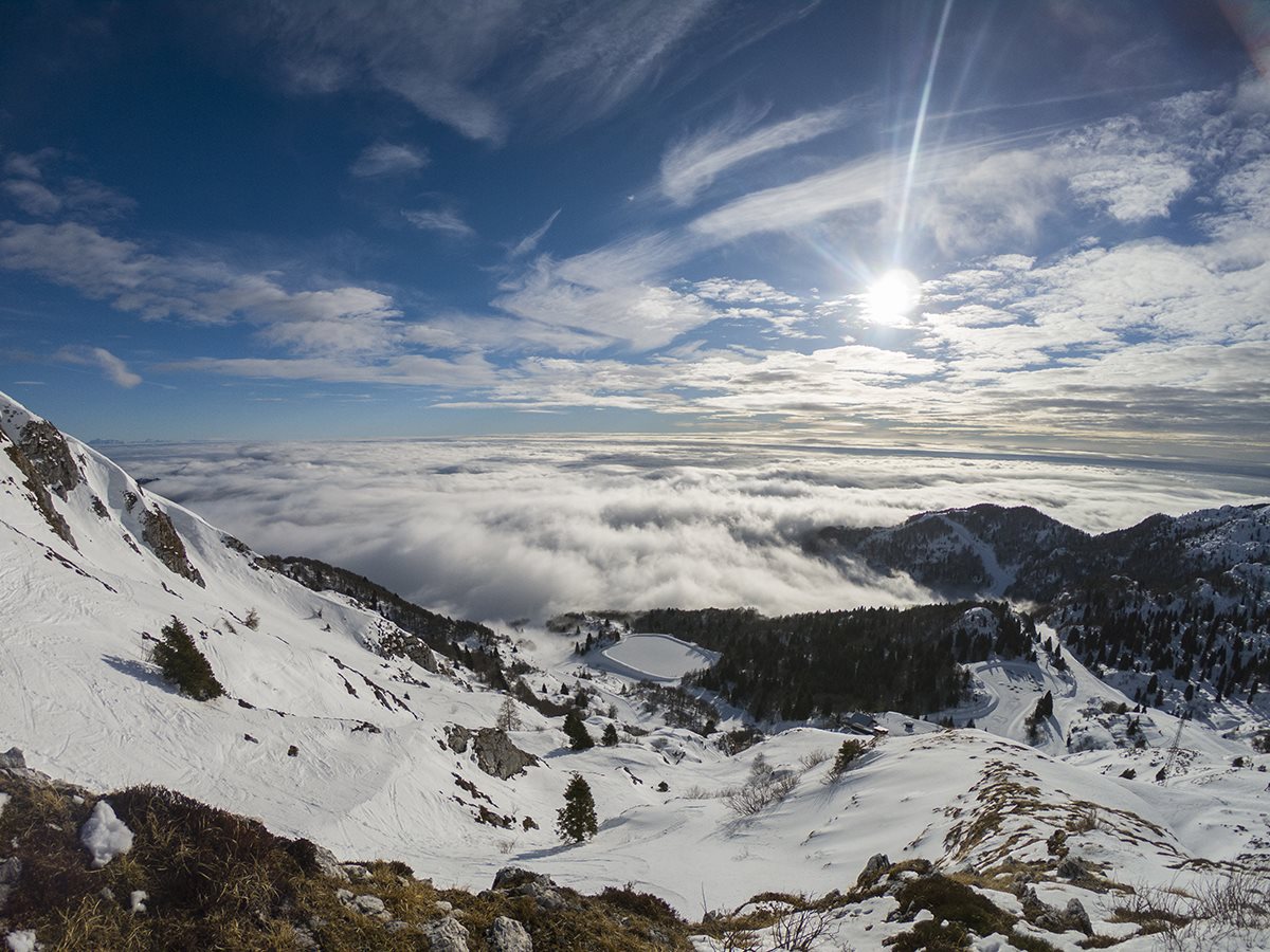 Una distesa di bianche e soffici nuvole accarezzano la valle. Mi godo il momento. Sono attimi di libertá e pace.