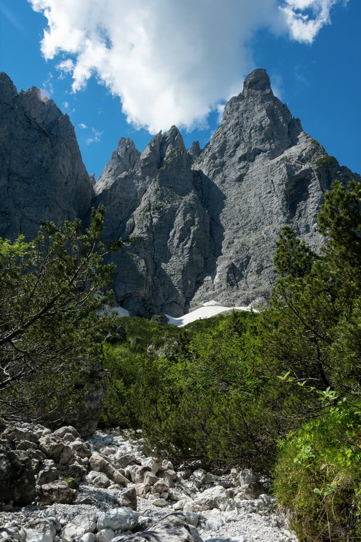 Il Rifugio Grauzaria è collegato al parcheggio in località Nanghets dal sentiero CAI 437, che non presenta alcuna difficoltà tecnica o tratti pericolosi. I primi 100 metri di dislivello dei 500 totali sono su una strada forestale che si addentra nel bosco e sfuma in sentiero. Nel corso della camminata incrociamo i ruderi di malga Flop e il bivio per il Bivacco Feruglio dopodiché la vegetazione si abbassa e finalmente intravediamo il panorama attorno a noi. Attraversiamo un paio di guadi e scorgiamo infine il rifugio su un soleggiato balcone naturale.Ho amato questa escursione per la varietà di paesaggi attraversati dal sentiero. Se è vero che il più delle volte il Rifugio Grauzaria è usato come base per escursioni difficili, è anche una camminata piacevole. Perfetta come gita domenicale suggellata da un succulento pranzo a base della tipica cucina di montagna del Friuli Venezia Giulia fatta di formaggio alla piastra, polenta, cervo e salsiccia.