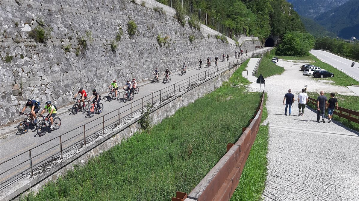Non tutto è pedalabile vista la ripida salita, ma la breve fatica è ben ripagata dalla meravigliosa vista sulle Alpi Giulie e sulla Val Fella caratterizzata dal tracciato dell’omonimo fiume. Da questa posizione si capisce l’importanza strategica della zona come controllo del confine fin dall’antichità. Questa fortezza militare venne edificata nel 1904 e usata successivamente durante la Prima Guerra Mondiale. Negli ultimi anni l’intero edificio è stato restaurato e oggi ospita un piccolo museo visitabile su prenotazione contattando il Comune di Chiusaforte. Ho avuto la fortuna di essere presente a una di queste visite, persone gentili e preparate mi hanno fatto conoscere numerose curiosità e particolarità di questo luogo, ma se non dovreste riuscire a parteciparvi, anche solamente essere saliti alla fortezza per una pausa vi riempirà gli occhi e il cuore. A breve l’intero complesso sarà organizzato anche per il pernottamento e la ristorazione.