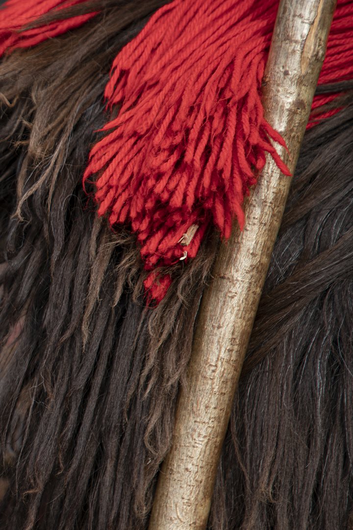 La maschera che copre il volto nasce a mano dall'intaglio di un blocco di cirmolo, legno morbido che permette di scolpire i dettagli, anche quelli più piccoli, con precisione.