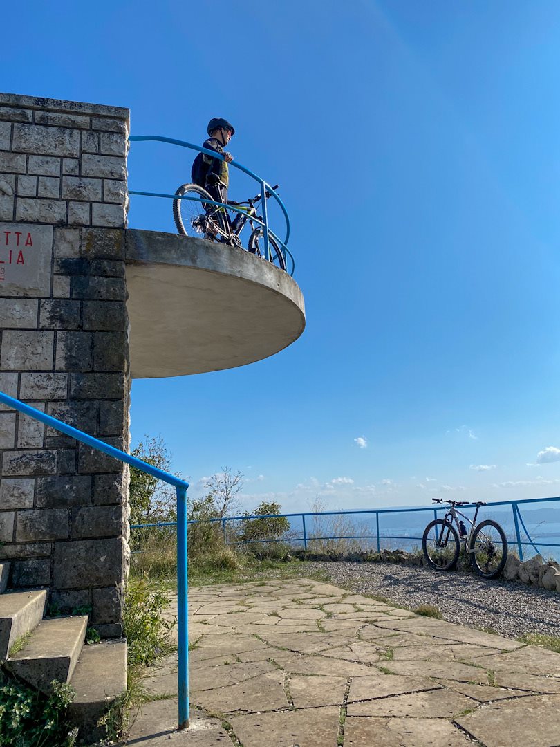 Alla fine del parcheggio, sulla destra, noterai una fontanella; prosegui per alcuni metri e sulla sinistra noterai una traccia che devi prendere: si tratta del sentiero CAI 12 che, con dei bei scorsi e qualche passaggio difficile per la presenza di grosse rocce (meglio portare la bici a piedi in questi punti), ti porterà in salita fino a destinazione.