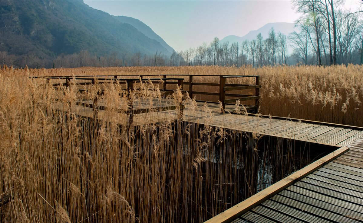 Sentieri facili, alla portata di tutti e percorribili sia a piedi che in bici ti stanno aspettando! Immergersi tra i canneti dorati, fare la conoscenza della numerosa e amichevole fauna e la possibilità di praticare sport nella pace più totale sono i cavalli di battaglia di questo luogo! Le numerose panchine sono appostamenti ideali per un pic-nic vista lago in completa tranquillità! Per i più intraprendenti consiglio l’esperienza della canoa, imperdibile nei mesi estivi!  Per avere diverse visuali del lago e delle sfaccettature della natura suggerisco un percorso che dalla zona del parcheggio attraversa il ponte in legno sospeso sopra il blu del lago e poi tenendo la destra si inoltra nel dorato canneto fino a sbucare in un prato per raggiungere infine il camping.