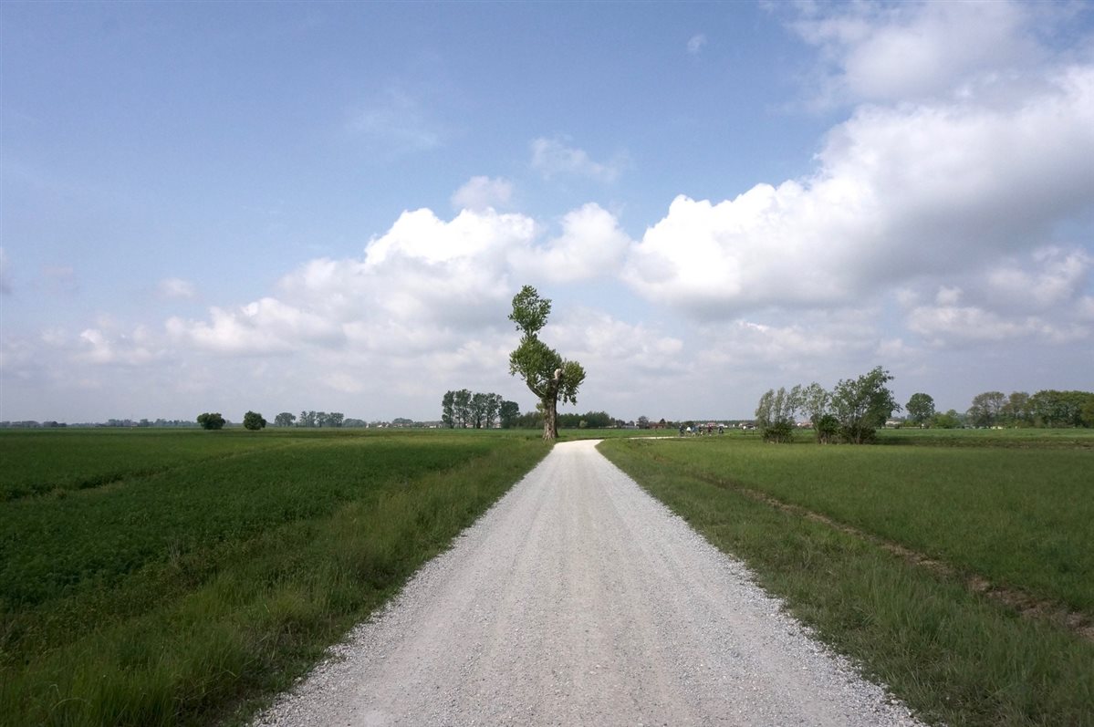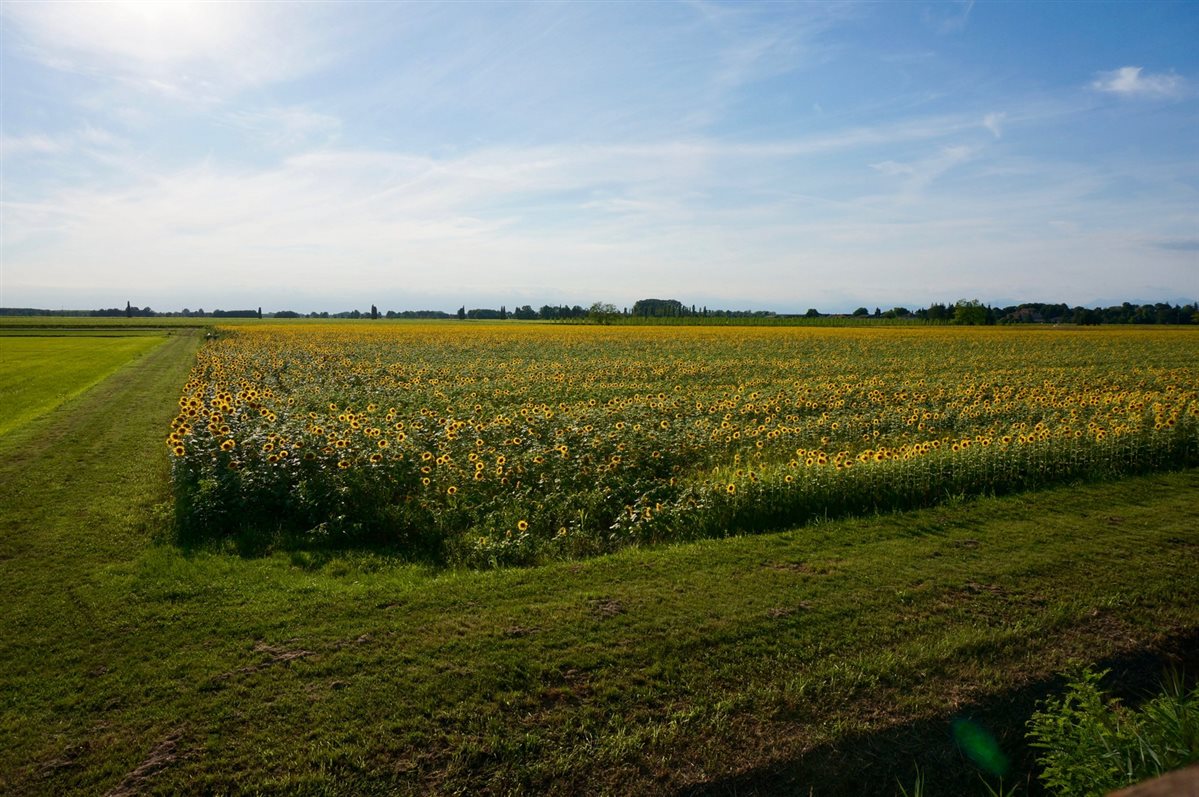 Quando la mattina apro le finestre di casa mia non vedo il mare né tantomeno dei meravigliosi paesaggi collinari. Io abito nella bassa friulana, quella fatta di distese di campi, di vigneti, qualche boschetto qua e là e dei corsi d'acqua che lentamente giungono al mare. Ma il bello di abitare qui è che in pochi chilometri, in bici, posso raggiungere tranquillamente su strade sterrate e molto tranquille la laguna di Marano verso sud o la maestosa Villa Manin andando verso nord. Tutto questo in un raggio di 40 km. Quando sento la necessità di pedalare prendo la mia macchina fotografica, salgo in bici e parto. Mi ritrovo così a percorrere stradine che tagliano i campi pieni di colza gialla e brillante o di papaveri che infuocano la terra con il loro superbo colore. In estate quando i girasoli dominano la scena mi lascio trasportare dallo scorrere del fiume Stella che mi fa giungere a Villa Ottelio Savorgnan affacciata sulle sue acque nel piccolo borgo di Ariis. Risalendo verso le risorgive mi fermo al Zarnic dove Federico mi ristora con del succo di mela che accompagna con i suoi salumi e formaggi e la favolosa composta di cipolle. Ancora qualche km verso nord per poi deviare e ritornare verso casa attraversando una risaia in quel di Paradiso di Pocenia mentre il paesaggio cambia e si tinge di mille caldi colori autunnali. Raggiungo così il Bosco di Muzzana dove le foglie quasi congelate scricchiolano al mio passaggio e mi dirigo verso la laguna dove la Bilancia Di Bepi se ne sta a riposo aspettando la nuova stagione. Un giro attorno a casa mia, un paesaggio che cambia ogni stagione regalandomi sempre uno spettacolo diverso e che vorrei farvi conoscere perché qui in campagna c'è molto altro da scoprire. Che ne dite, VENITE CON ME?