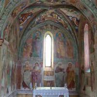 Eccoci poi arrivare alla Chiesa di San Lorenzo, poco prima dell'abitato di Forni di Sotto, lungo la vecchia strada.  Anche qui gli affreschi richiamano simbologie e significati oltre il tempo, memoria di legame tra spirito uomo e terra.