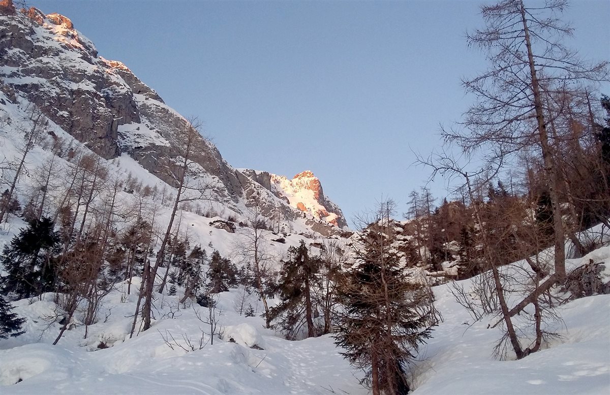 I started the hike close to the "Rifugio Chiampizzulon" at 1630 meters, and after a great ascent, apparently the first winter solo on the north face, I was on the summit at  2314 meters.