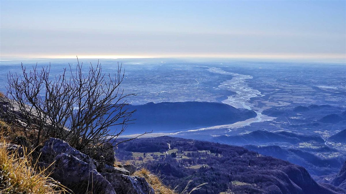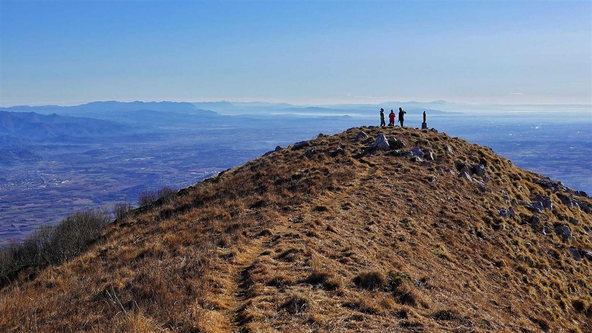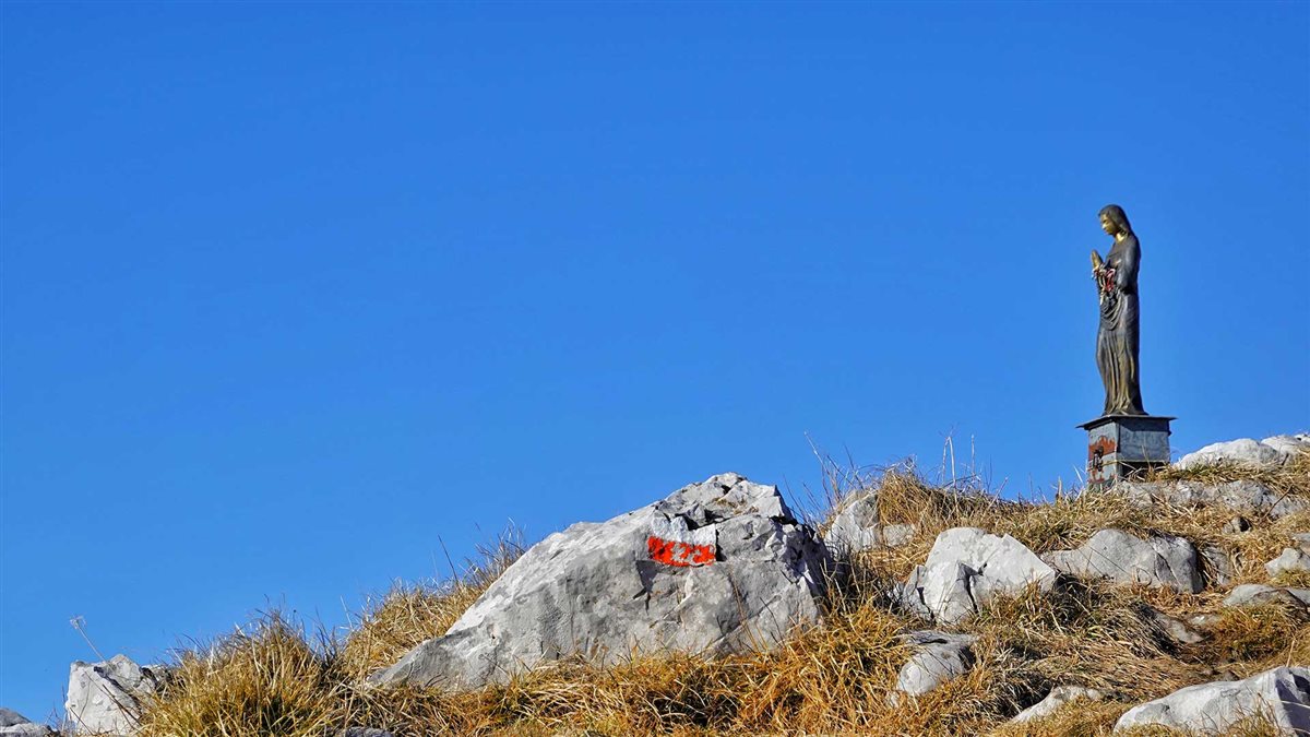 Dopo un’ora e mezza sul bellissimo sentiero, che alterna spazi aperti ad altri in mezzo al bosco, si raggiunge la panoramicissima vetta del Monte Cuar. Qui si trova la suggestiva statua della Madonna, nei cui pressi c’è il libro di vetta oltreché, poco distante, anche la campana dedicata alla memoria delle vittime del terremoto in Friuli.