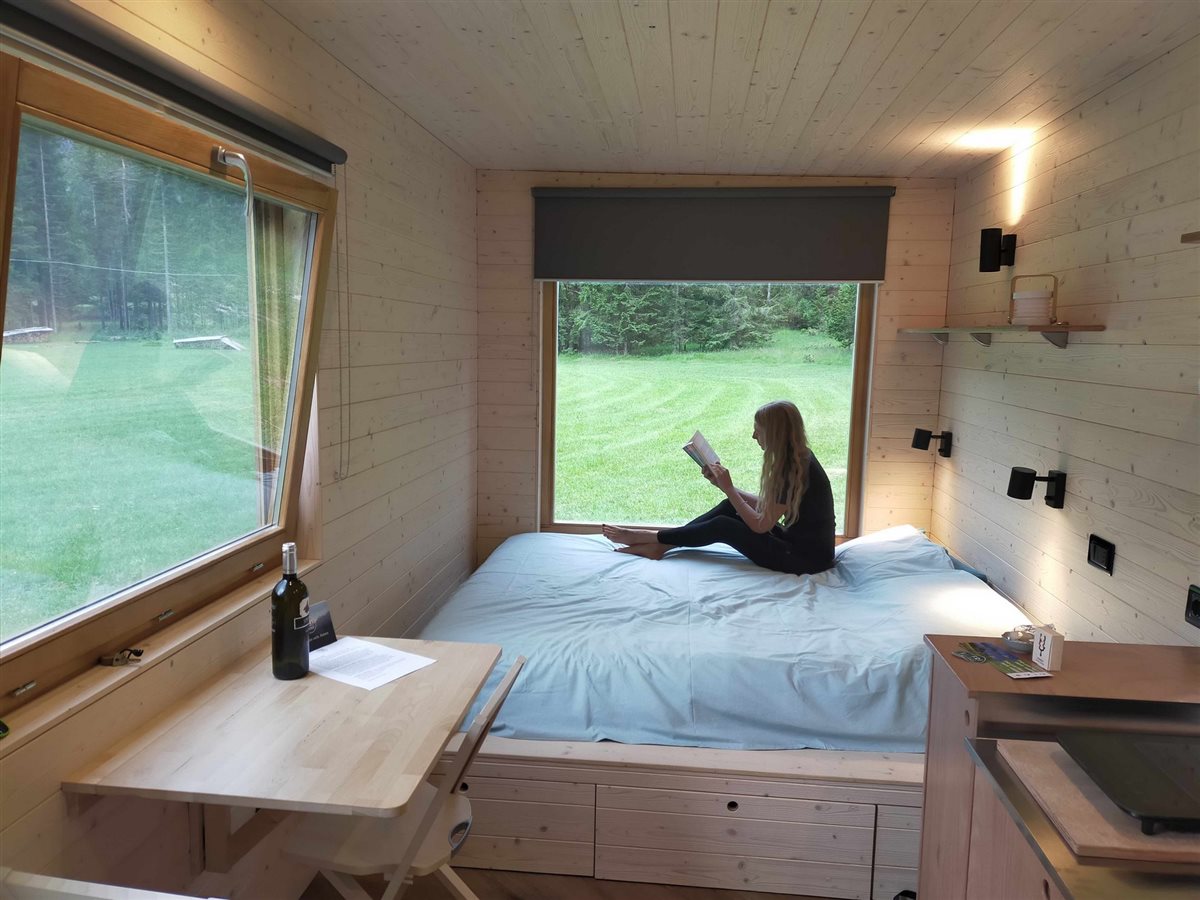Can a mini house of 12 square metres contain everything necessary for a holiday in such a small space? The answer is yes. It was a lovely surprise to discover (and try) Friland, the first mini-accommodation service on wheels immersed in the nature of Friuli Venezia Giulia.