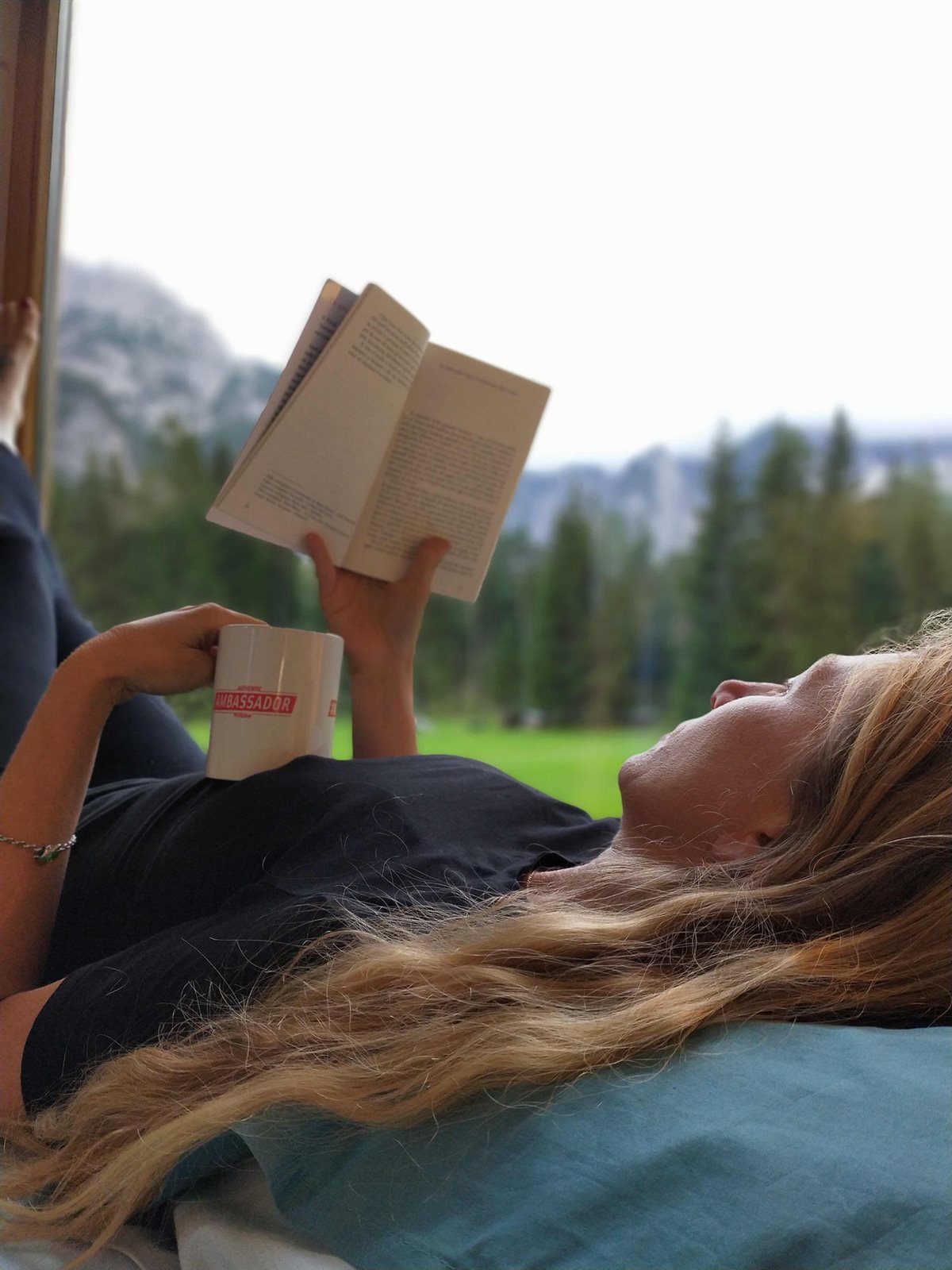 The light from the window wakes us in the morning, as we purposefully left the curtains open. It was too inviting to open our eyes to the view of the mountains. In the mini kitchen, we find everything we need for making coffee, tea, and there is also jam, croissants and biscuits. A great breakfast before facing the wonderful cycling paths of the area.