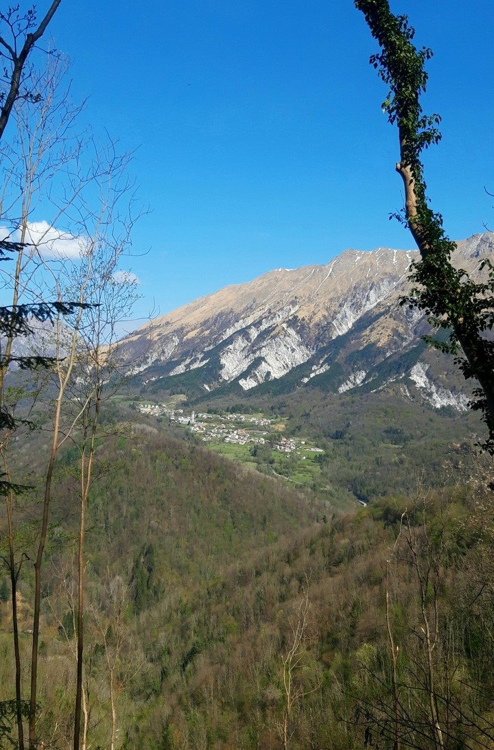 Pedalo verso il capoluogo tralasciando l’ingresso in paese proseguo sulla strada principale, ed ecco il primo saluto, un anziano intento a preparare la legna mi saluta e mi incita sorridendo. Salgo velocemente verso il paese di Montemaggiore, poco distante verso ovest, si vede Monteaperta, affacciata al caldo sole primaverile. La strada spiana e tralasciando il bivio per Montemaggiore raggiungo dopo aver scollinato il passo di Sant’Antonio, il paese di Platischis. Mi meraviglio delle tante persone che passeggiano e come da incipit salutano e sorridono.