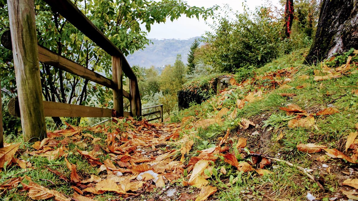 Rallegrati e riscaldati guardiamo il panorama che ci appare ora diverso… la nebbiolina che avvolge le colline dalle mille sfumature autunnali rende ora il paesaggio molto più suggestivo e caratteristico.