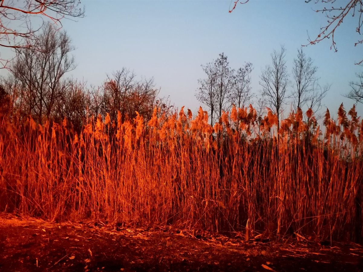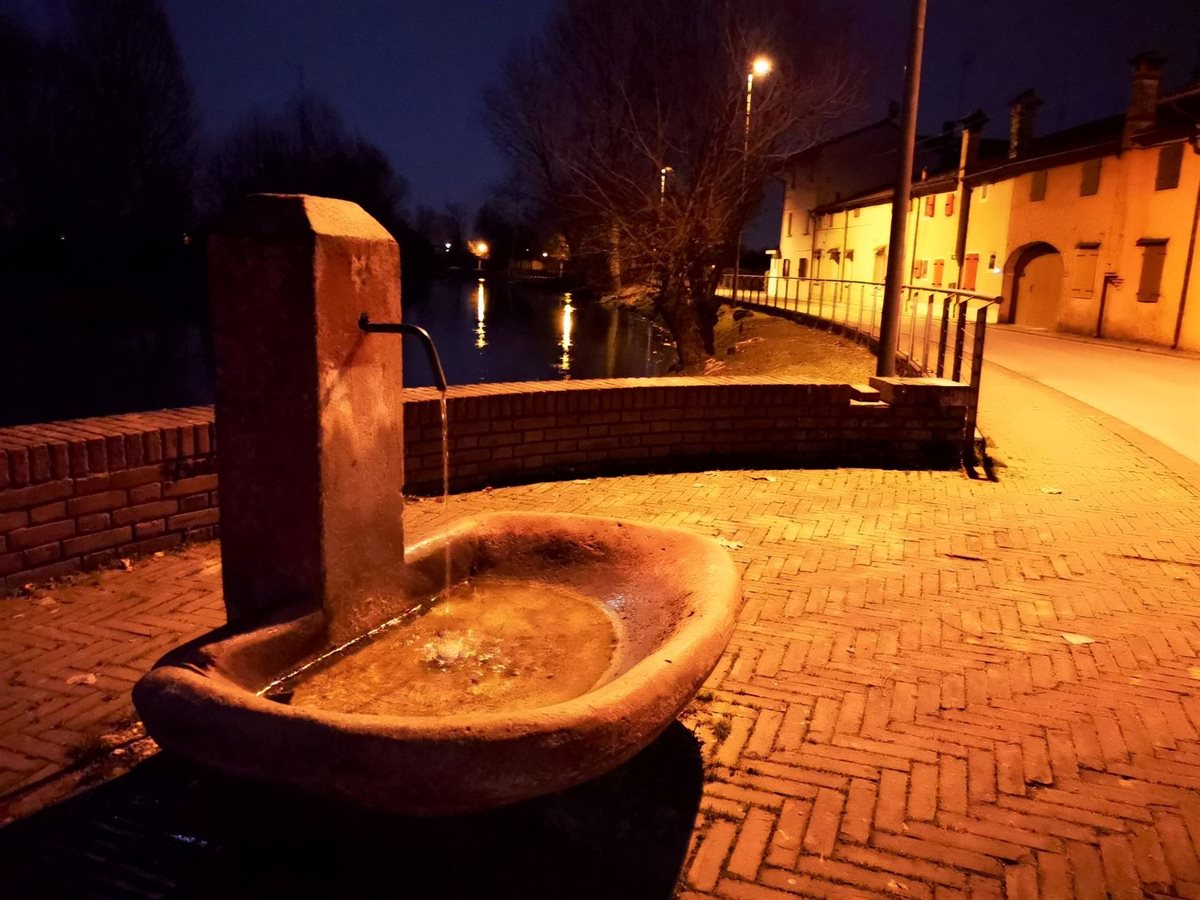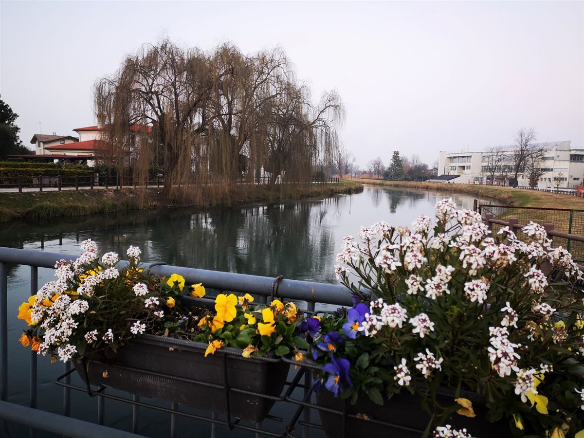Dal ponte di Fiume Veneto/PN, con luce chiara, un semplice tratto in Parco è stato per me occasione di trèmiti all’imbrunire. La segnaletica indica verso il salice dalla verde chioma, lungo il fiume Fiume e oltre, nel parco del ramo che non scorre, morto appunto. Solo un’ora di tempo in tasca. L’idea di scoprire un’area naturalistica, a piedi, era frenata dal veloce cambio di luce. La parola Mortol, al tramonto, dipingeva di ombre la scena. La voglia di conoscere ha prevalso sui dubbi. Pochi passi e già alle spalle avevo un contesto irreale, veneziano. Il tracciato proseguiva, a dossi e a bassure. Vedevo erbe umide, a terra, in un globale secco come le alte canne palustri. Incontri silenziosi: alberi spogli, qualche merlo, una panchina occupata, spazi con possibili uscite, qualche anima in bici, a piedi. Indifferenti le anatre a riva. Il ramo morto esiste, è un’ansa seminascosta. Lo specchio fluviale scorre veloce, parallelo al viottolo. Chiusa la Chiesa della Beata Vergine Addolorata, XVII sec. La torcia mi ha aiutato a vedere scalini imprevisti, a cogliere la vista di case emergere come in un camèo, un gioiello, inatteso. Un flash di riflessione, citando Ruth Renkel: Non abbiate paura delle ombre, significano che c’è della luce che splende lì vicino. Ripresa la via, il conforto di case vicine. Allo stop potevo tornare nei rumori, invece ho ripreso la via del Parco, tra il buio e le luci dei lampioni, costeggiando in solitaria il fiume che nell’umidità mi nascondeva tanto.  L’atmosfera faceva accelerare. Finite le case, passata la fontana, superate le solitarie panchine, giusto in tempo al ponte e al parcheggio.