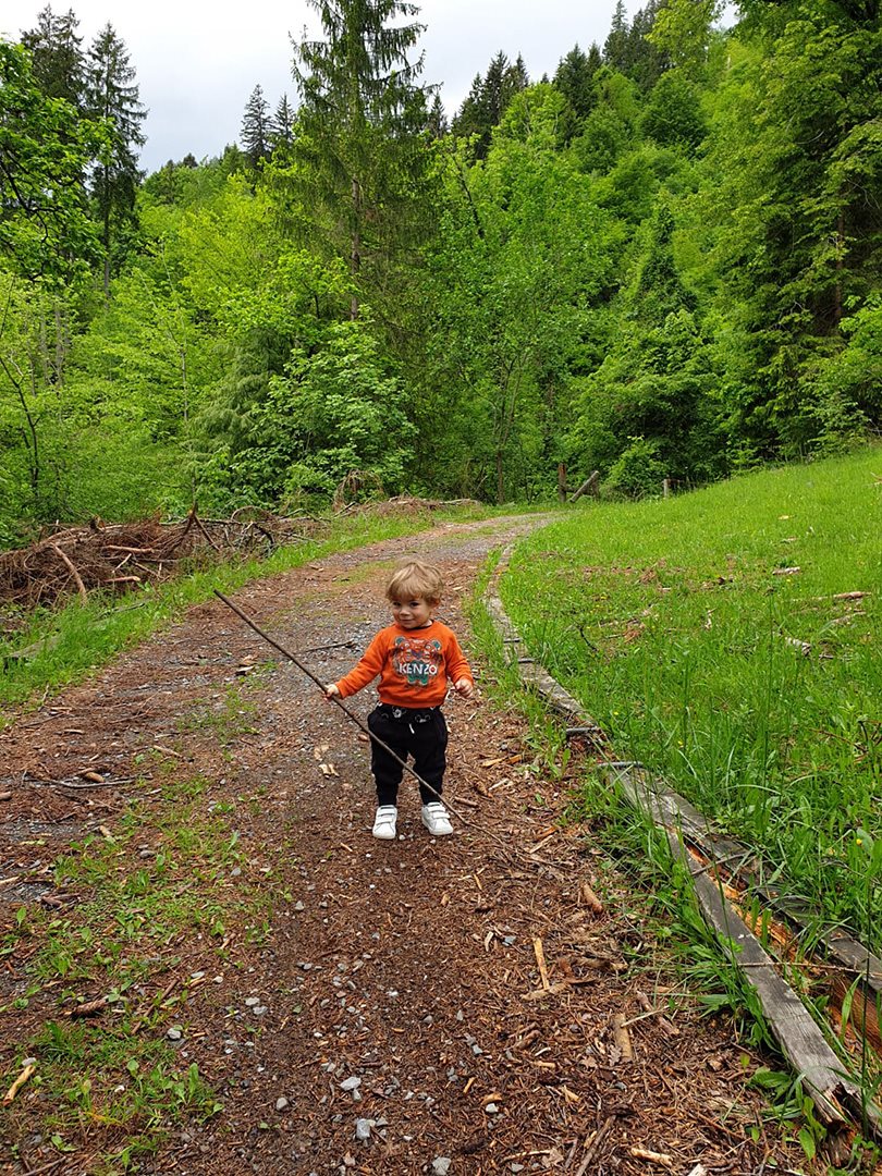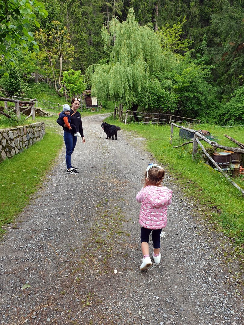 Subito dopo ci siamo trovati sui prati di Ramazas… Quanto sarebbe stato bello fare un picnic… A questa idea, ho distolto il mio cervello dalla bellezza del posto e ho allertato il mio caro marito, specializzato nello scovare posticini super dove andare a mangiare. Mentre i bambini giocavano con legnetti e fiori raccolti durante il sentiero, mio marito e il suo fedele smartphone hanno trovato un posto dove andare a mangiare. Abbiamo deciso così di tornare alla macchina.