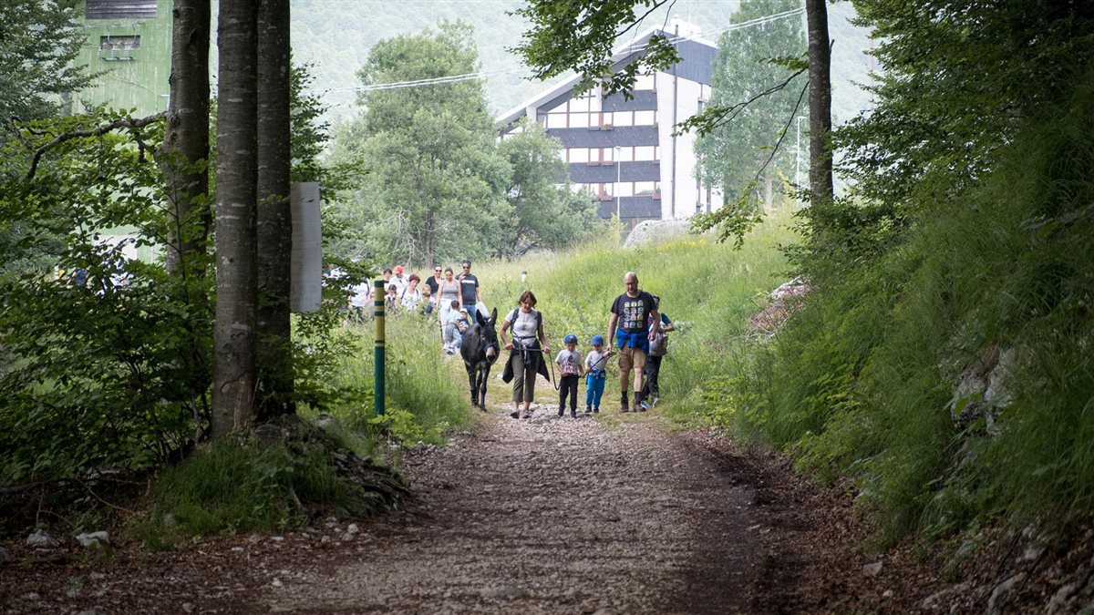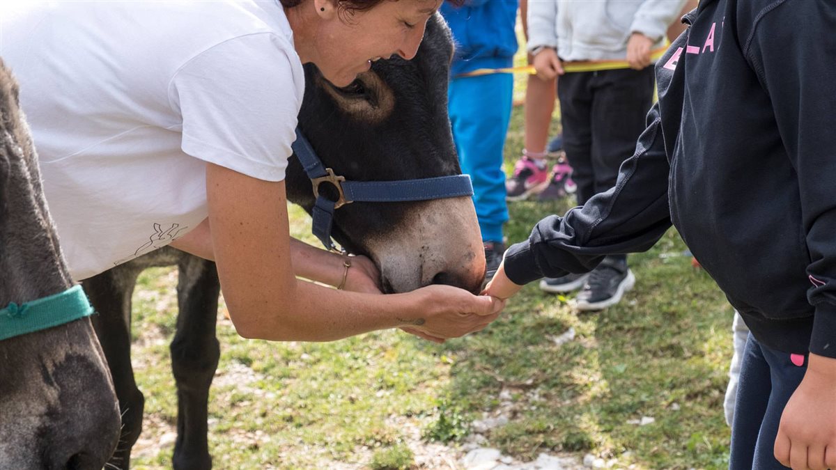 Poi conducono gli asinelli, insieme ai bambini, lungo il sentiero, che è quasi tutto pianeggiante, con diversi belvedere sulla pianura sottostante: lassù la vista è mozzafiato. L'esperienza che si vive è veramente molto interessante, soprattutto per chi ha bambini, ama gli animali e la vita all'aria aperta.