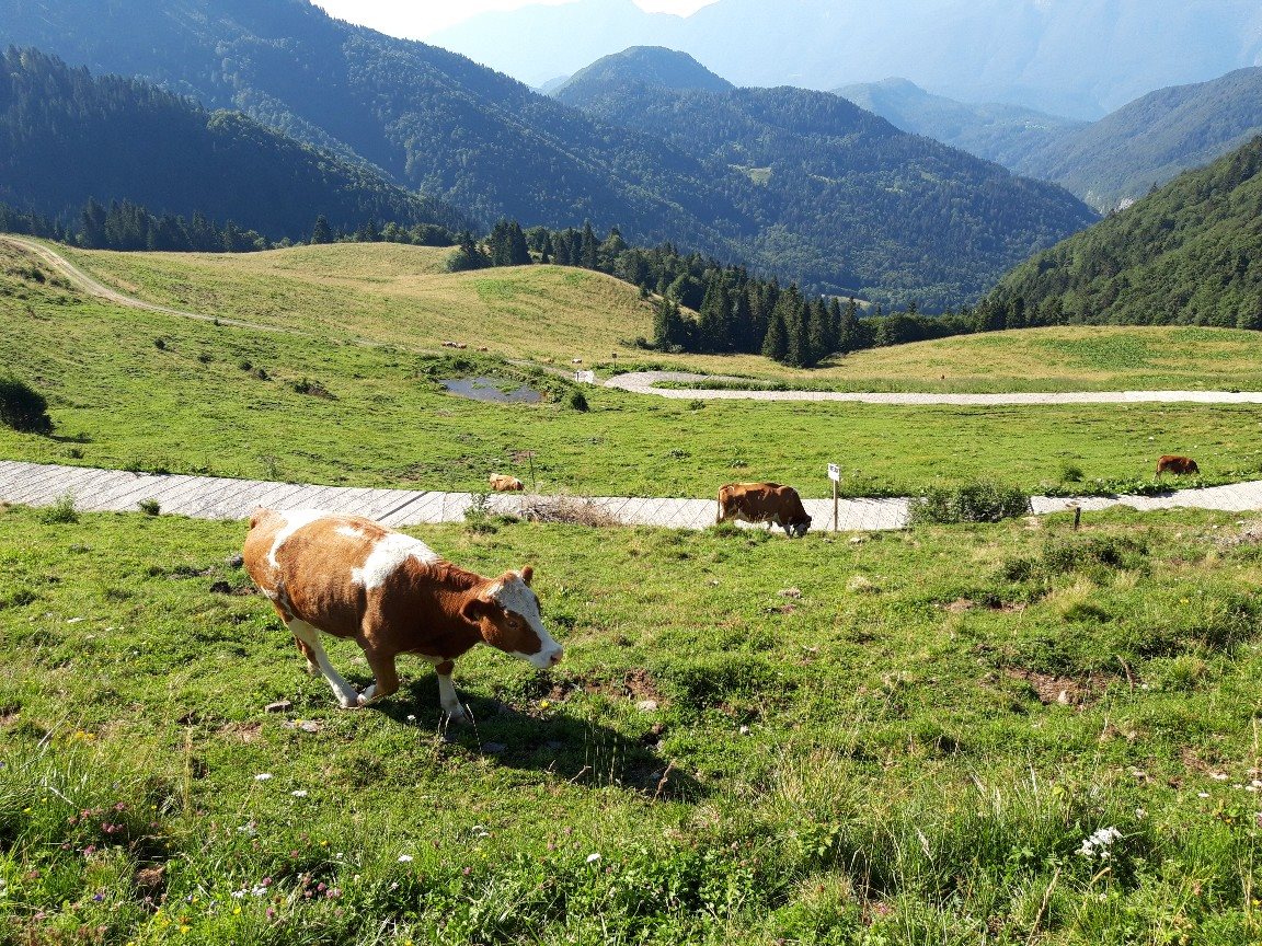 In sella alle sue e-bike abbiamo raggiunto lo Zoncolan, icona del ciclismo di cui è già stato detto tutto…o quasi. In effetti la parte meno nota della montagna è quella che con un gioco di vette e di creste porta verso Sud. Tamai e Arvenis sono le cime principali di questa catena, nomi che ci riportano alle antiche attività pastorali (tamar=recinto per animali, arvum=campo), molte le malghe, alcune ancora attive, dove facciamo un salto indietro nel tempo. Attività antiche dove il tempo non si misura con l’orologio ma con le necessità degli armenti e della produzione casearia. Noi abbiamo deciso di visitare Malga Meleit, dalla cima dello Zoncolan ci si arriva in poco tempo e con poco dislivello, è un’escursione adatta a tutti. La cosa che mi colpisce è la differenza tra la moderna vita mondana dei versanti più noti del Kaiser e il piccolo mondo antico pochi chilometri più a Sud. Cuore e anima fanno pace, quella famosa pace che stavo cercando quando siamo partiti. Il verde dei prati, i punti rossi dei rododendri, il fischio di una marmotta, il volo dell’aquila sono tutti segnali che il mio ormai si è ritrovato. Ancora una volta: grazie Carnia, non mi deludi mai.
