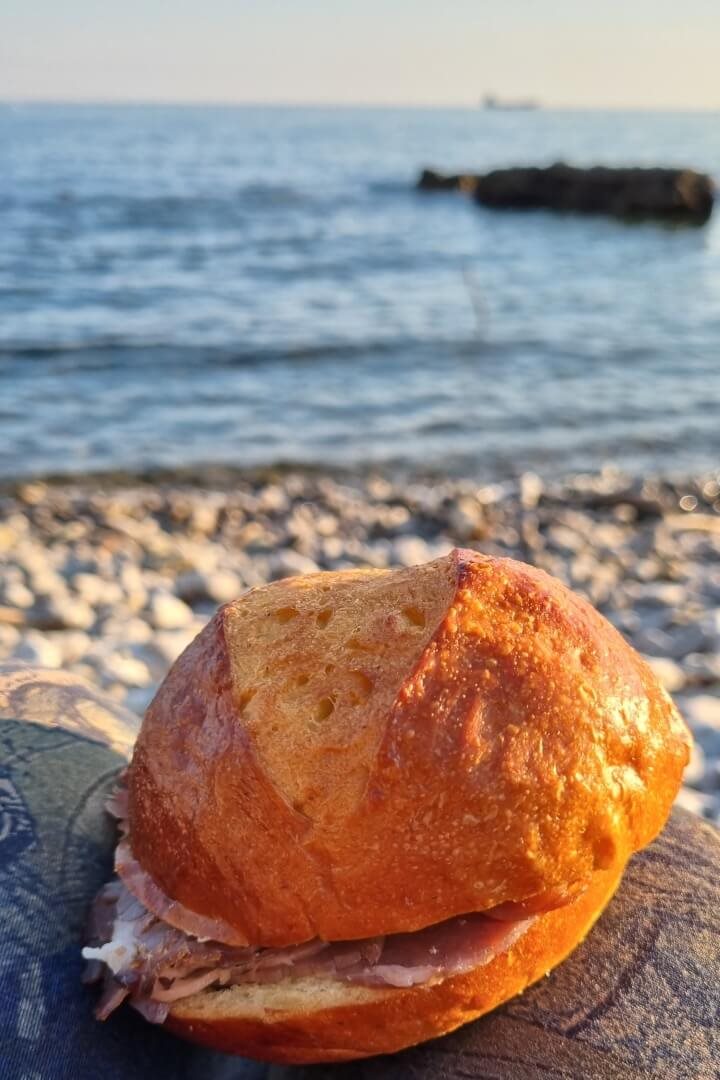 Con i piedi a lambire il mar Adriatico, all’ombra dei tanti uliveti della costiera triestina, seduti sui sassi della spiaggia di Canovella de’ Zoppoli, porticciolo il cui nome deriva dalle antiche e tipiche imbarcazioni a remi (gli zoppoli o in sloveno čupe), scavate nel tronco d’albero dai pescatori sloveni di Aurisina, abbiamo assaporato i prodotti di questo particolare e unico microcosmo di territorio, che mescola sapori mediterranei a suggestioni slave e germaniche.