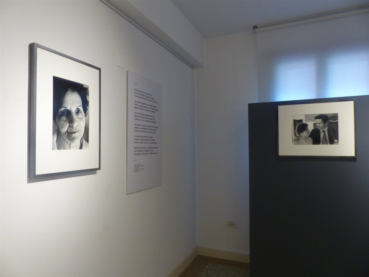 Becchetti fu invece un grande fotografo che documentò con i suoi scatti i protagonisti della Roma degli anni ‘60, lavorò per molti giornali e proprio grazie ad un servizio richiesto dal Messaggero incontrò Pasolini nella casa romana dove viveva con la madre e la cugina. Come si legge nel catalogo della mostra, secondo Becchetti “la fotografia è scoprire se stessi negli occhi di un altro” ed i ritratti e gli sguardi intensi dello scrittore, della madre e di alcuni amici più cari come Dacia Maraini, Natalia Ginzburg, Federico Fellini e altri, a volte gelidi e a volte carichi di tenerezza, attraverso le luci ed ombre del bianco e nero vi coinvolgeranno proprio in questo.