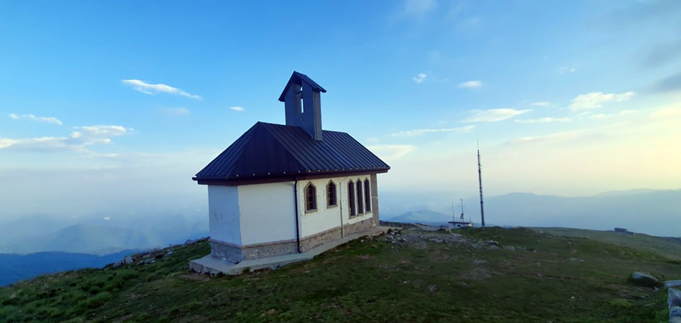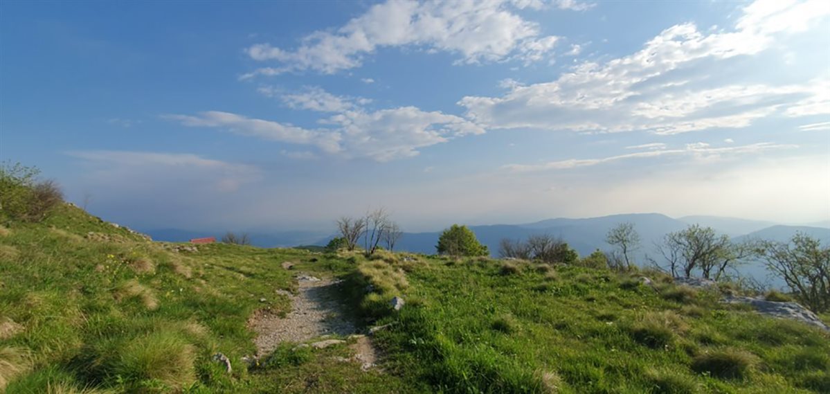 Raggiunta la cima a quota 1641 mslm faccio una piccola sosta, sedendomi sul muretto della Cappella del Redentore e riprendendo fiato. Una vista a 360° sulla pianura (nelle giornate più limpide, si vede il mare), sulle Valli del Natisone e sulle montagne Slovene.