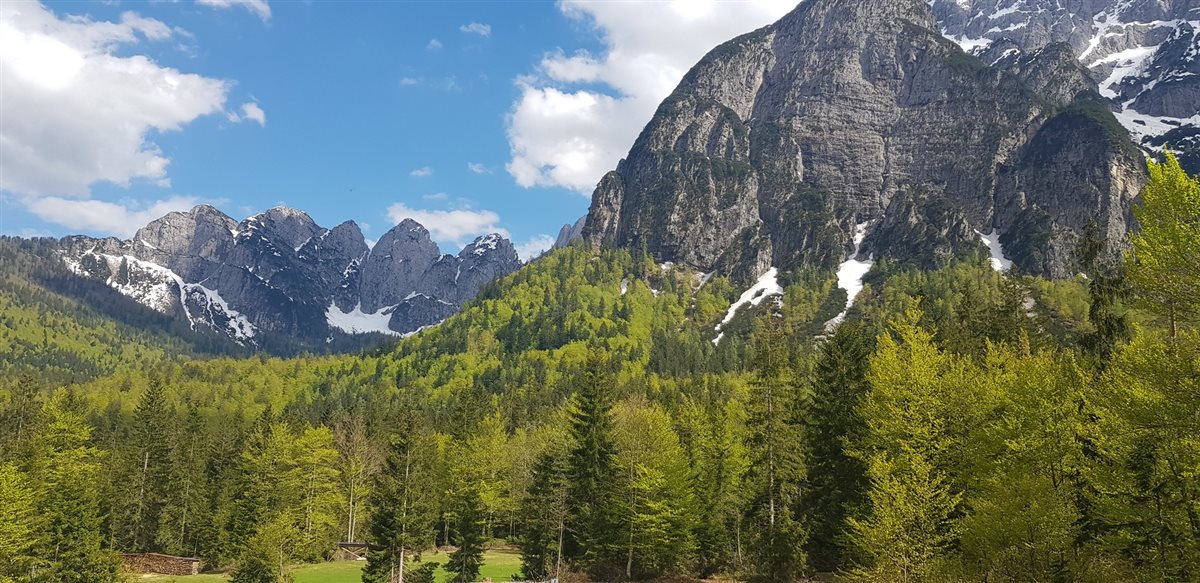 Da queste parti, dove il Montasio domina le Alpi Giulie, veniva spesso a camminare il grande alpinista e poeta J. Kugy. Cercò invano per molti anni il suo tesoro: la leggendaria "Scabiosa Trenta", un fiore molto raro o forse addirittura mai esistito.