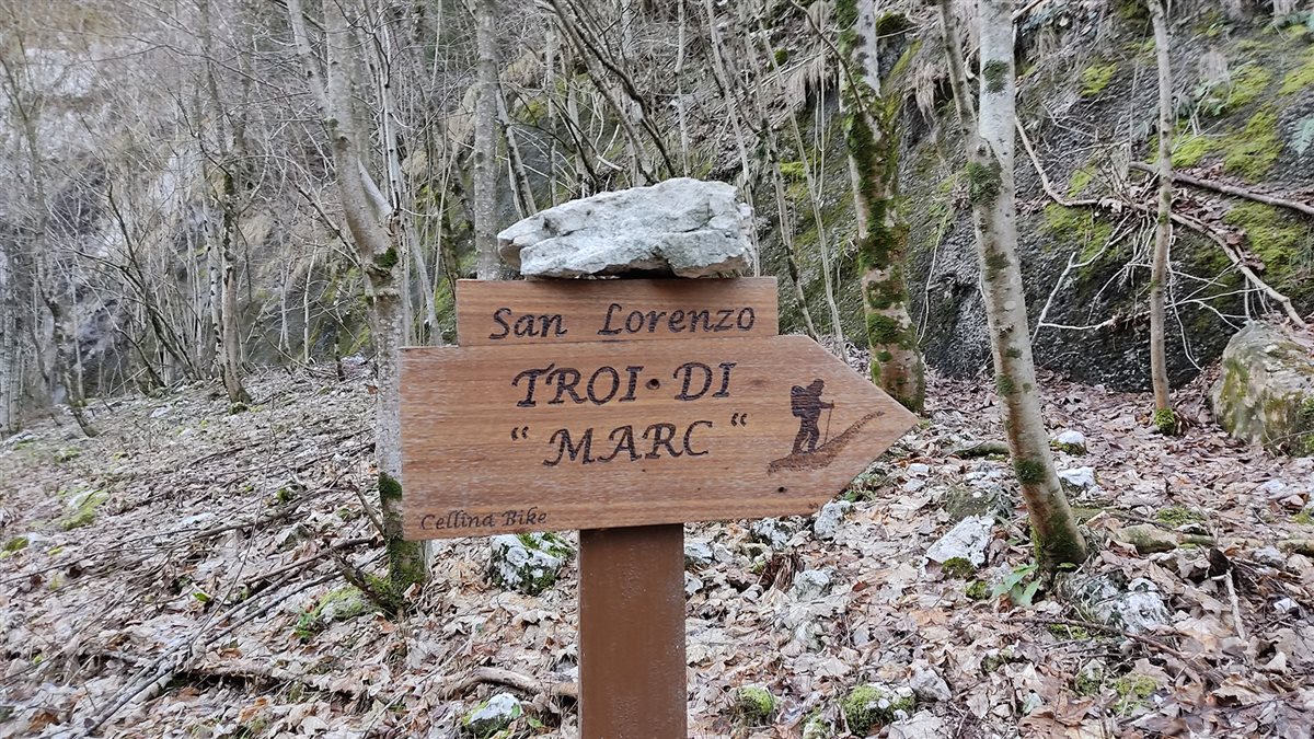 Si accede ad una strada forestale che verso destra in circa 30 minuti conduce ai Landris.