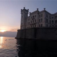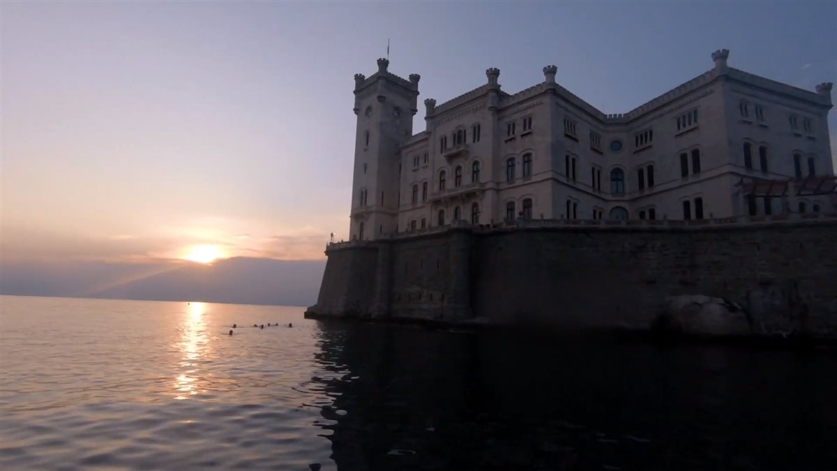 Con la muta, maschera e pinne (che vengono lasciati in dotazione) abbiamo nuotato per circa due ore, costeggiando il Castello di Miramare illuminato da uno splendido tramonto estivo, alla ricerca delle specie animali o vegetali che una delle accompagnatrici ci aveva precedentemente illustrato.