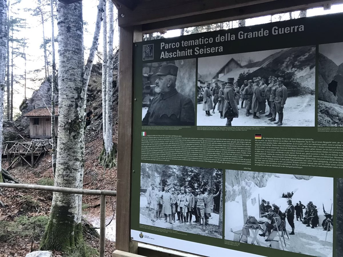 Questo è un percorso con tante anime e offre numerosi spunti naturalistici, artistici, storici e di riflessione. Io sto ancora ripensando alla storia di Heinrich e Beppo, quasi “amici” in quel lontano 1915, quando era proibito anche solo pensare di essere qualcosa più che nemici… li trovate là, secondo abete a destra, qualche passo dopo la pietra a forma di cuore, proprio di fronte alla chitarra sulla roccia…