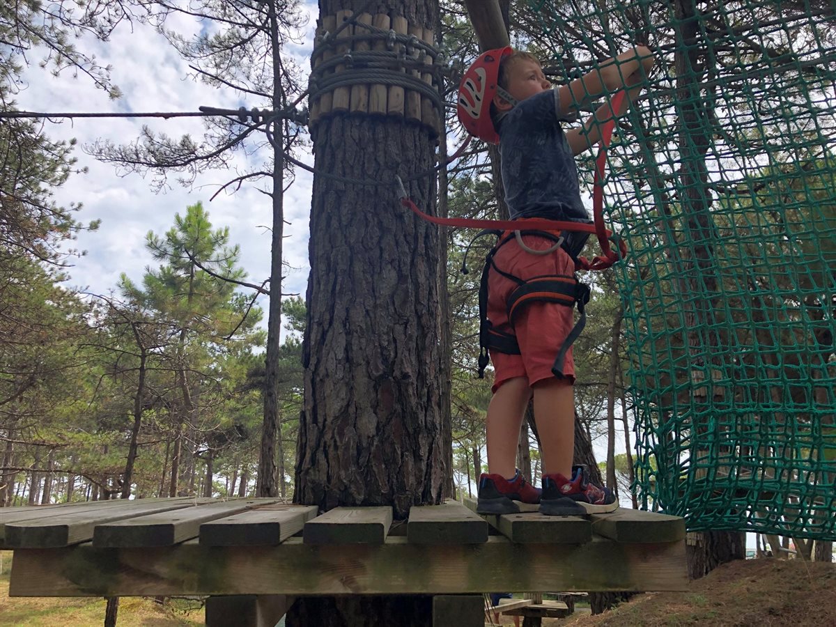 Mio figlio Filippo (5 anni) da tempo mi chiedeva di potersi cimentare in un’arrampicata con corde e moschettoni, così, ho deciso di portarlo al parco avventura di Lignano Riviera: il parco UNICEF.