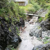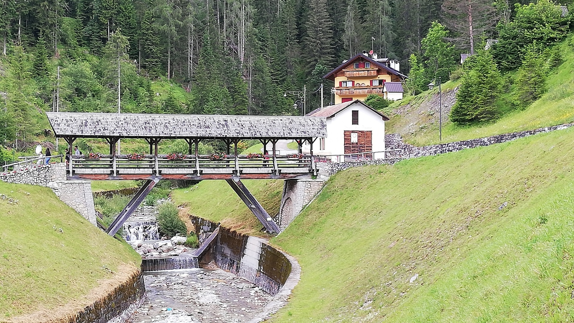 Lasciamo la macchina presso il ponte sul rio Muhlbach che attraversiamo grazie ad un tradizionale ponte pedonale di legno. Il sentiero per le Cascatelle parte proprio alla sinistra di questo ponte in prossimità del piccolo Museo della Grande Guerra. Una tabella ci dice che il percorso richiede una ventina di minuti e già dal primo sguardo intuiamo il fascino di questa gola scavata e modellata dalla potenza delle acque del rio Muhlbach che, con un salto di una ventiana di metri, ha dato vita appunto a queste cascate.