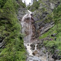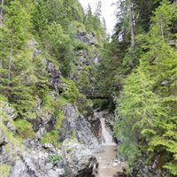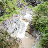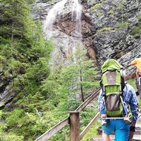 Iniziamo subito la salita che tra salti di roccia, scalette, passerelle di legno e il costante gorgoglio dell'acqua ci porta ad una piccola conca da cui ammirare la cascata principale che si tuffa in una pozza gelida e smeraldina.