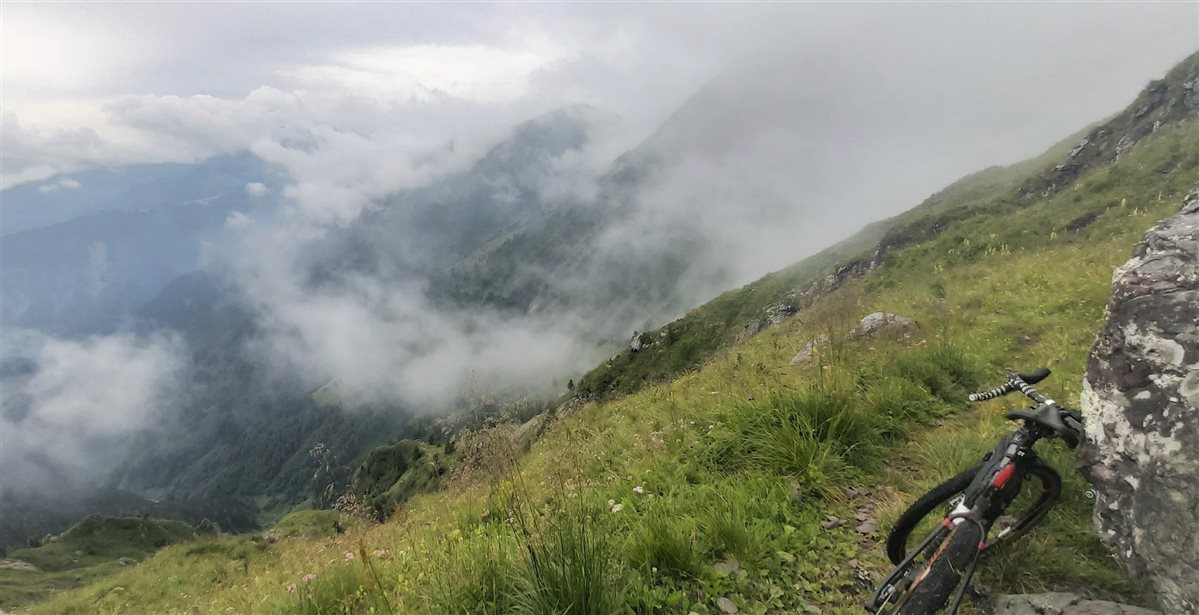 Proseguendo sulla strada principale imbocco il sentiero CAI 154 per dirigermi verso la Panoramica delle Vette, lo percorro a piedi con bici in spalla, anche con una Mountain-Bike si è costretti a farlo in qualche punto ma dopo circa 15 minuti di camminata trovo il bivio per il sentiero CAI 152 sulla sinistra. Lo imbocco e dopo circa 5 minuti ecco la bellissima Panoramica delle Vette, strada sterrata famosa per la decisione dell’ultimo minuto di non percorrerla nel Giro d’Italia 2011.