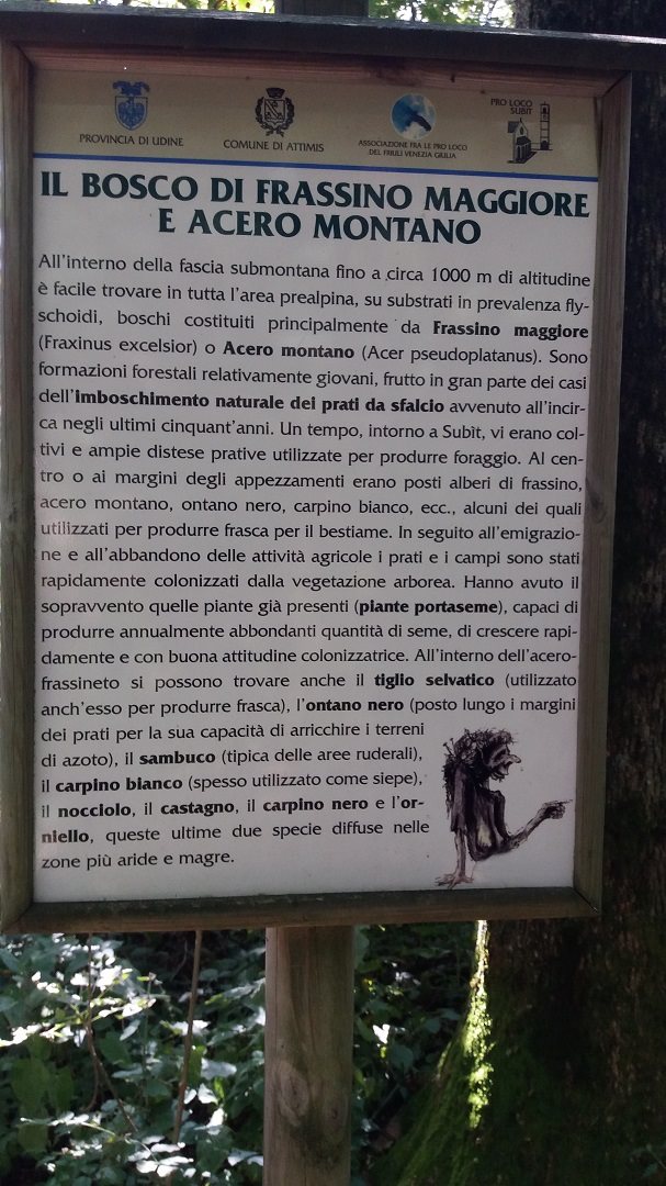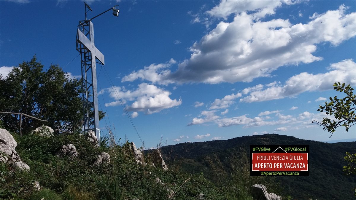 In alternativa c’è un percorso in parte più agevole che si incammina sempre  dalla piazza della chiesa e imbocca la strada (pista forestale) che porta nel comune di Taipana; dopo circa 1 km e mezzo contraddistinto da un segnale ben evidente, s’inerpica il sentiero che per circa 500 m con avvallamenti (saliscendi) abbastanza impegnativi, (a tale proposito si consiglia di utilizzare calzature appropriate), porta in cima al monte.