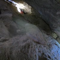 La visita alle gallerie superiori richiede la salita (in sicurezza!) di una ripida parete, aiutati da scalini infissi nella roccia. Raggiuntone il culmine ci troviamo davanti a un vero e proprio labirinto di gallerie che talvolta si intersecano su piani diversi facendo vedere dall'alto il percorso fatto in precedenza! Ma la sorpresa è l'ampio finestrone naturale con splendida veduta verso Timau. Una bellissima avventura unica nel suo genere!