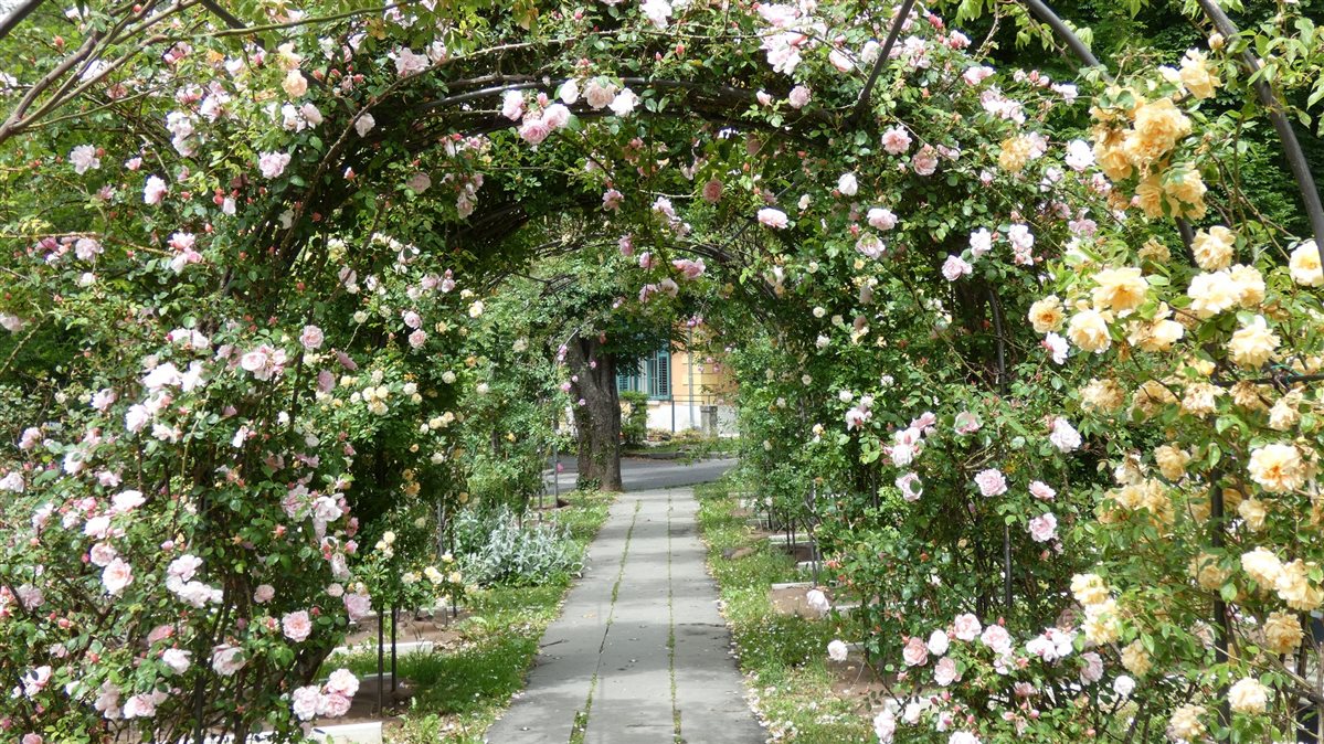 Iniziando la passeggiata dall’alto e scendendo lungo la Via Edoardo Weiss si arriva al Roseto, uno dei più grandi d’Italia.
