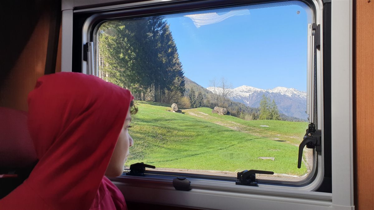La location è bellissima. La nostra casa viaggiante è ferma ai piedi del bosco.