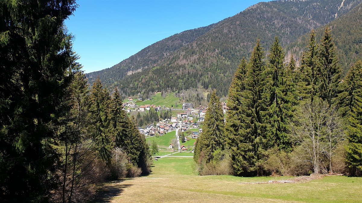 Da qui, si ammira un panorama di cime innevate dalle tinte rosacee che si perde tra i tetti delle borgate, esempi intatti di architettura carnica, che valgono al paese la nomina di “Borgo Autentico d’Italia”.
