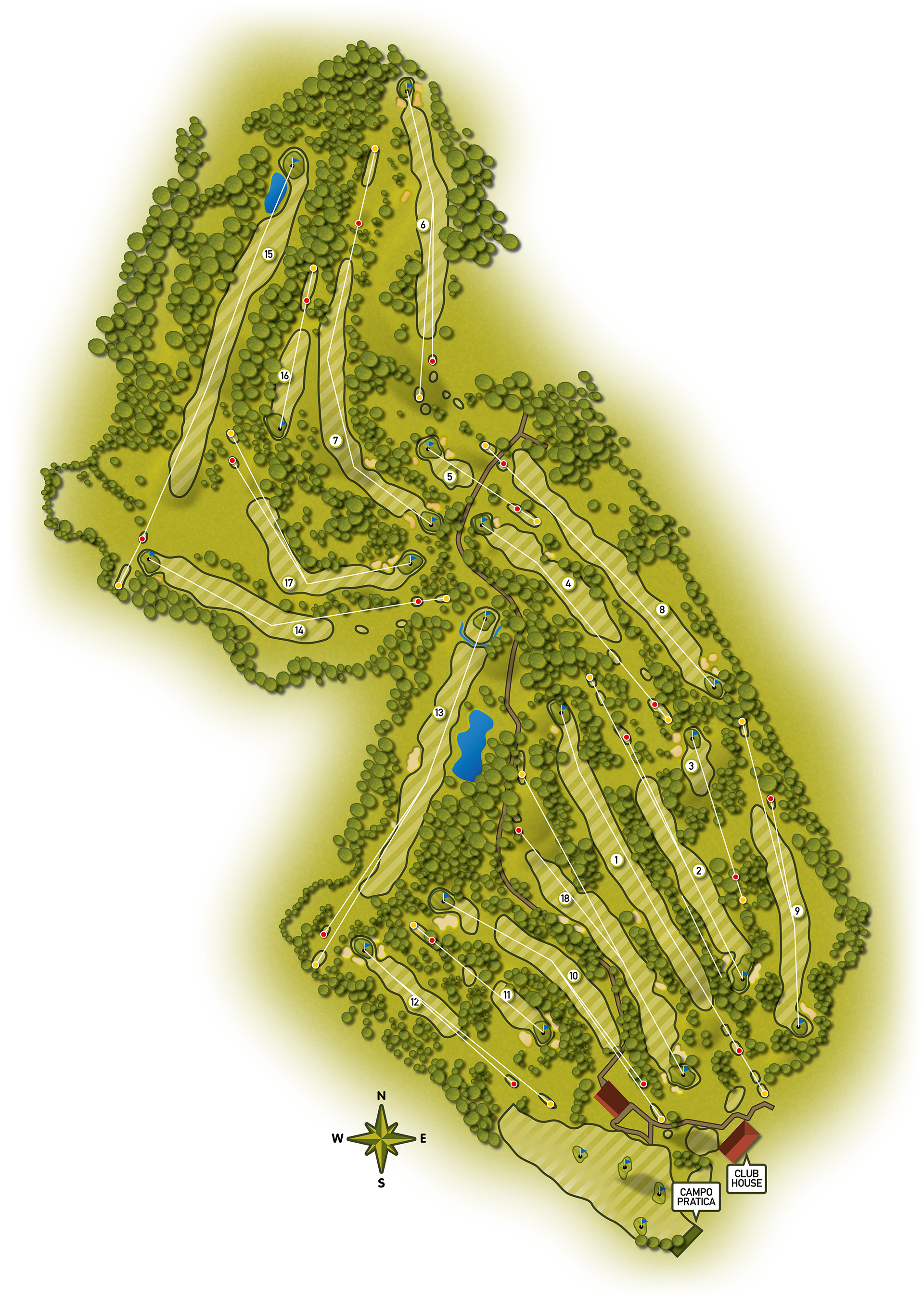 Over the years the 9 hole course, originally designed by architects John Harris and Marco Croze, was completed by the latter bringing it to its present day 18 holes harmoniously blended into 60 hectares. The competition course is a Par 72 and undoubtedly a difficult one, especially due to the numerous natural obstacles located along the 6000m course.