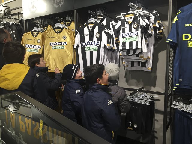 A questo punto abbiamo visitato lo store, dove poter acquistare qualche souvenir marchiato Udinese Calcio e la Club House, l’esclusiva zona ristorante e riunioni con la sala congressi. Poco distante da qui, da poco rinnovata, si trova la Ludoteca “le Zebrette” una bellissima iniziativa che è piaciuta particolarmente al mio piccolo: si tratta di un’ampia sala riscaldata e dedicata ai bambini, qui due animatori professionisti si prendono cura dei piccoli tifosi mentre i genitori guardano la partita dai propri posti sugli spalti. È un servizio gratuito, i responsabili si annotano il numero di telefono di uno dei genitori che è contattato in caso di necessità, e i bambini possono godersi un bellissimo castello, una grande piscina di palline e giocare ai rigori grazie ad una porta gonfiabile imitando i loro beniamini a pochi metri di distanza (se la partita vera langue e sentite il bisogno dell’emozione di vedere qualche “Golasso” consiglio una capatina alla ludoteca!).