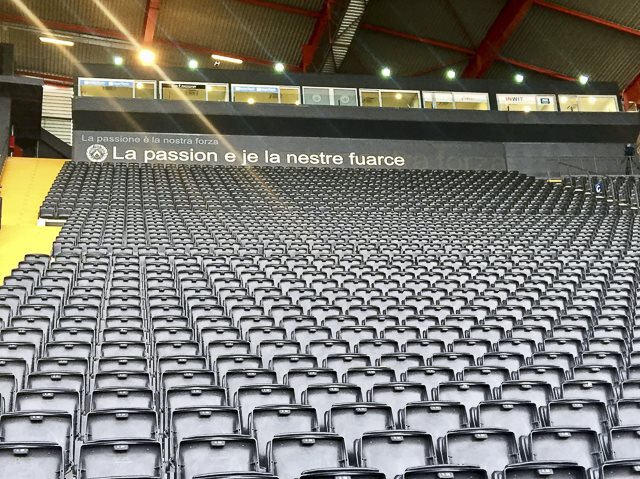 Vicino agli spogliatoi, ci sono la palestra, la SPA e il corridoio lungo e bianco che porta direttamente sul campo da gioco. Si aprono le porte e lo stadio ti accoglie: ora è completamente vuoto, ma dalle seggioline colorate sembra innalzarsi un coro, da qui la prospettiva è davvero emozionante e mentre io scatto qualche foto, mio figlio sfugge e si mette a giocare in panchina tra la poltrona del mister e quelle dei giocatori. Per un momento mi spavento perché penso sia zona off-limits e invece le hostess lo guardano con aria divertita e lo lasciano fare.
