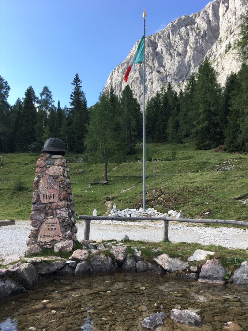 Prima di proseguire ci rinfreschiamo i piedi nelle acque limpide del torrente che scorre alle nostre spalle...o meglio...in quello che sembra un semplice torrente, ma che in realtà altro non è che il primo tratto del Fiume Piave! Già, perché il Piave nasce proprio qui, ed è alla sua sorgente che stiamo andando! Vi consiglio di non perdere l'occasione di vedere con i vostri stessi occhi dove sgorga uno dei Fiumi Sacri alla Patria, e se sarete troppo stanchi per camminare ancora, la buona notizia è che la sorgente è raggiungibile anche in auto e si trova davanti al Rifugio Sorgenti del Piave, ai piedi del Monte Peralba a 2037mt. In questo rifugio troverete ristoro, ripercorrerete le tappe della Prima Guerra Mondiale splendidamente esposte, vi immergerete per qualche istante in un momento storico di incredibile importanza e sarete per sempre testimoni della nascita silenziosa di questo fiume.