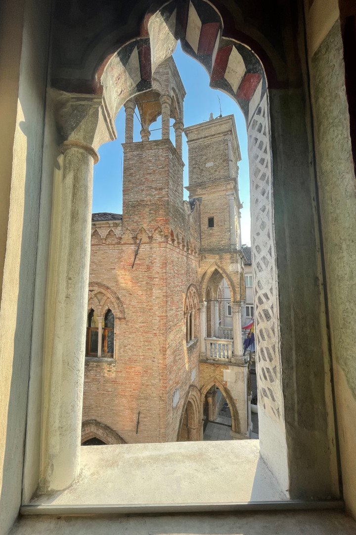È proprio una piccola monofora del secondo piano, che nel tardo pomeriggio ci offre la vista più bella sul palazzo del municipio e facendoci segretamente innamorare, ci chiede di tornare a rendere visita alla città un’altra volta ancora.