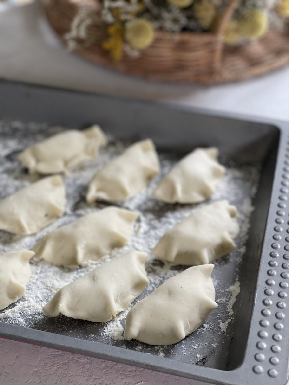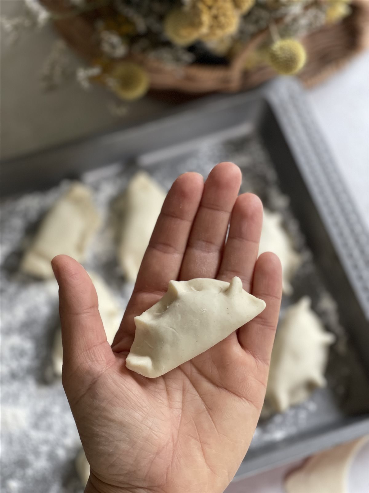 - Aggiungere il ripieno: posizionare una piccola quantità di ripieno al centro di ogni disco e chiudere i dischetti a metà, sigillando bene i bordi e creando delle piccole pieghe per decorare.
