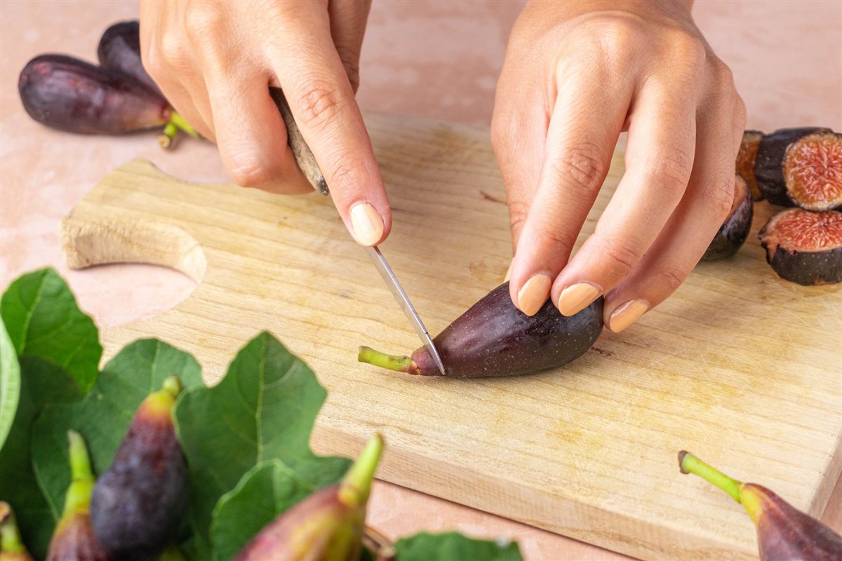 Lavare i fichi, tagliarli e frullarli con un frullatore a immersione fino renderli una purea.