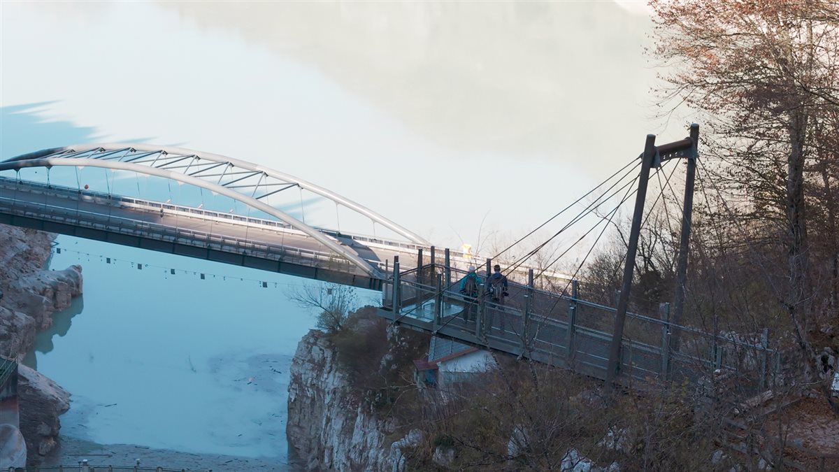 Il sentiero inizia con una breve scalinata che conduce a un suggestivo bosco di faggi, caratterizzato da fenomeni carsici unici come il Pozzo della Pioggia. Salendo, si raggiunge lo spettacolare Skywalk del Dint, una passerella in vetro sospesa nel vuoto che regala panorami indimenticabili su Barcis e il Lago.