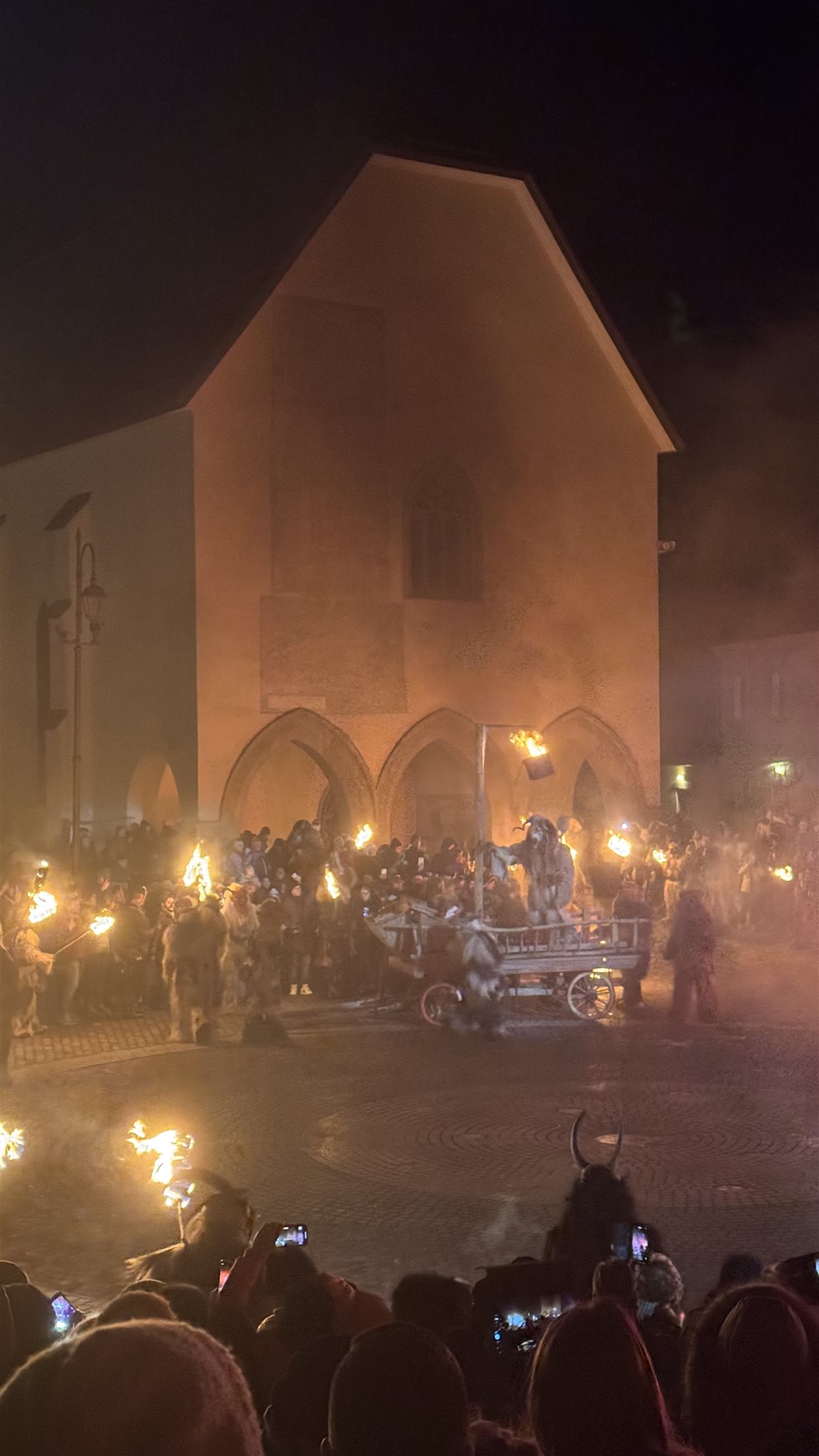 Il corteo principale parte da Via Roma e si conclude in Piazza Unità, dove San Nicolò distribuisce i tradizionali Krampus di pane ai bambini buoni. I Krampus, invece, rincorrono i più coraggiosi tra il pubblico, creando un’atmosfera di caos controllato, tra urla e risate.